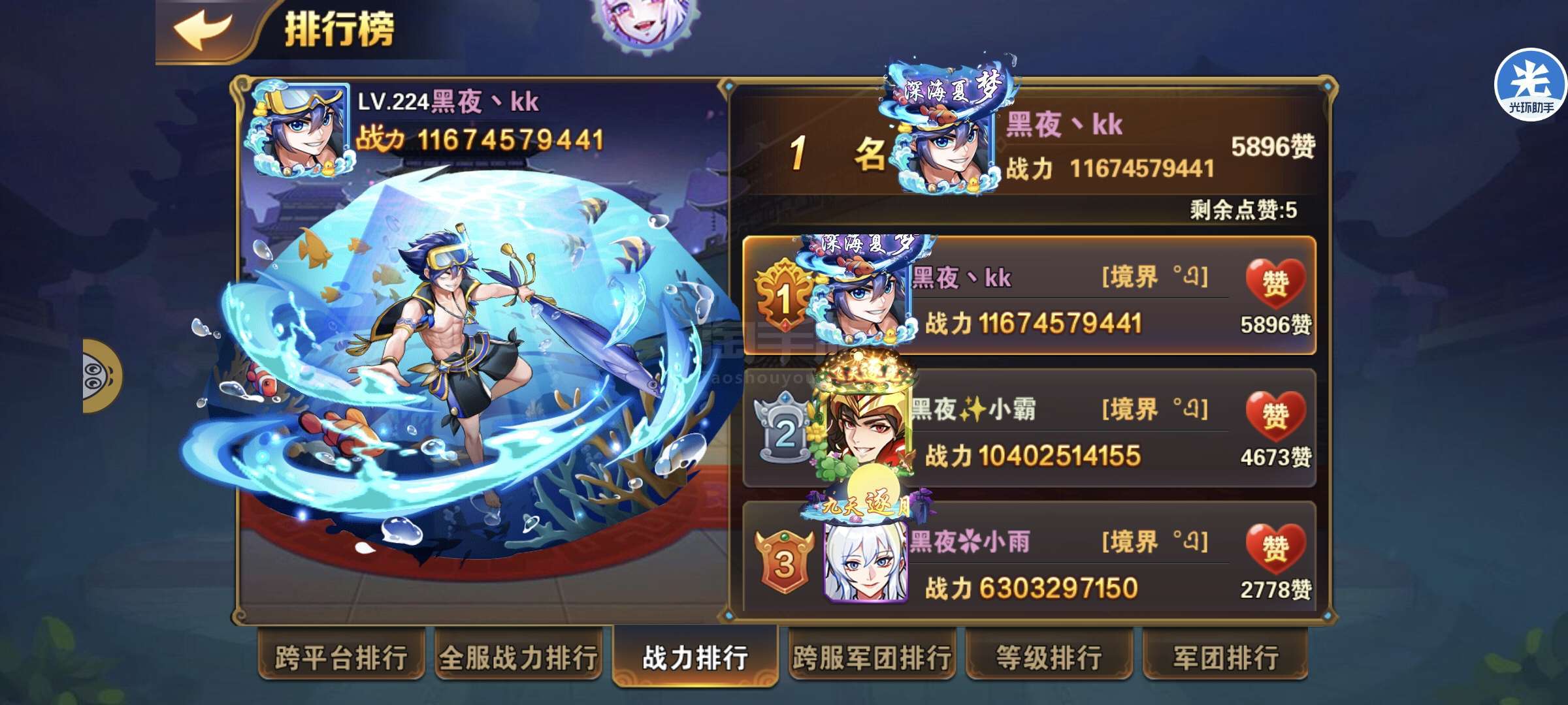 全服第一霸榜号,打架无敌,时装很多,还有典藏,116亿高战力,月赛团,人多活跃,有大佬带队玩起来舒服