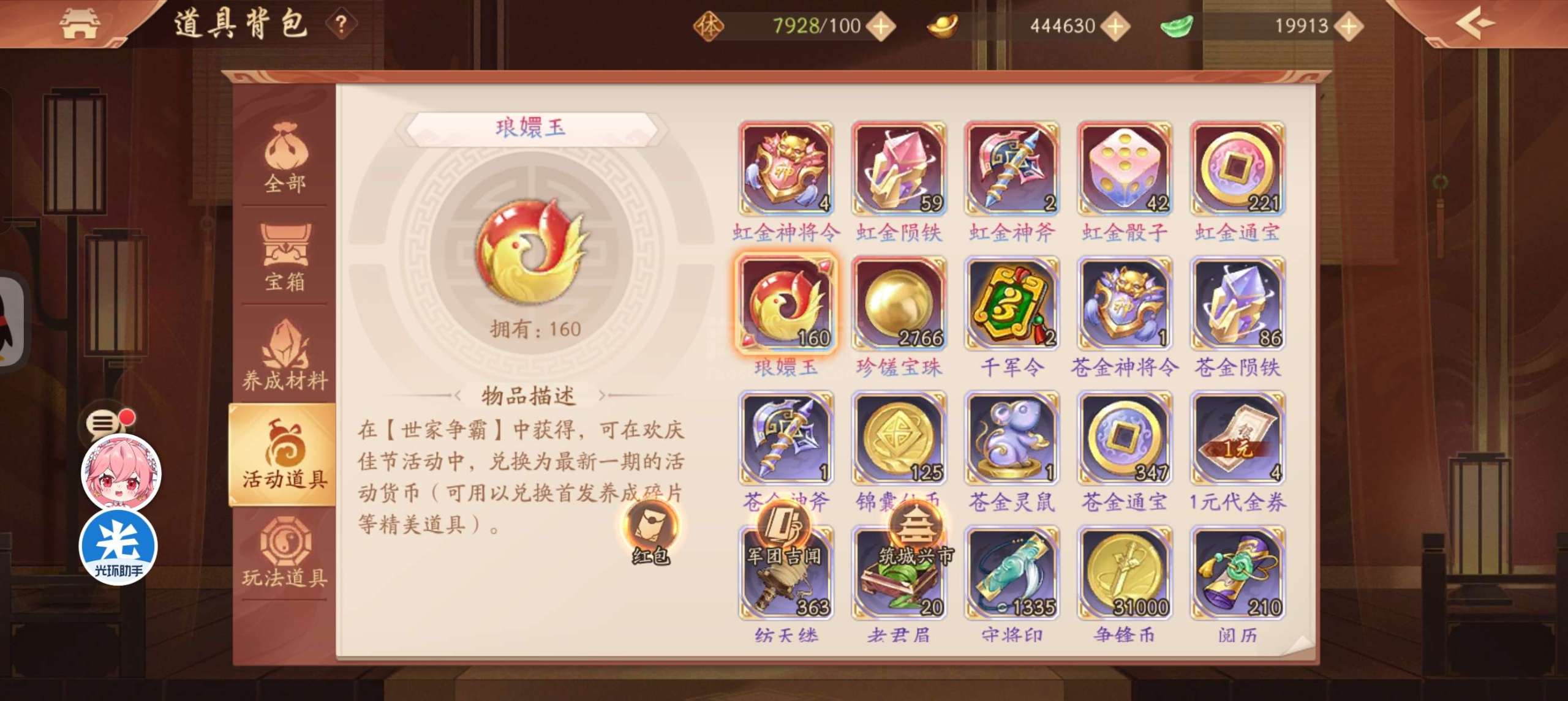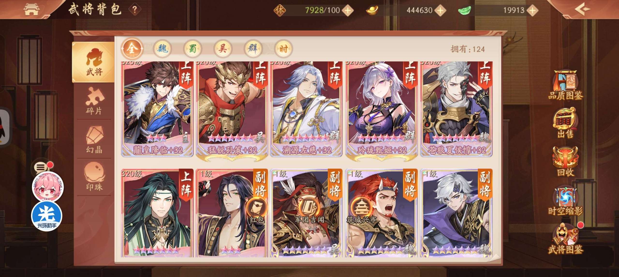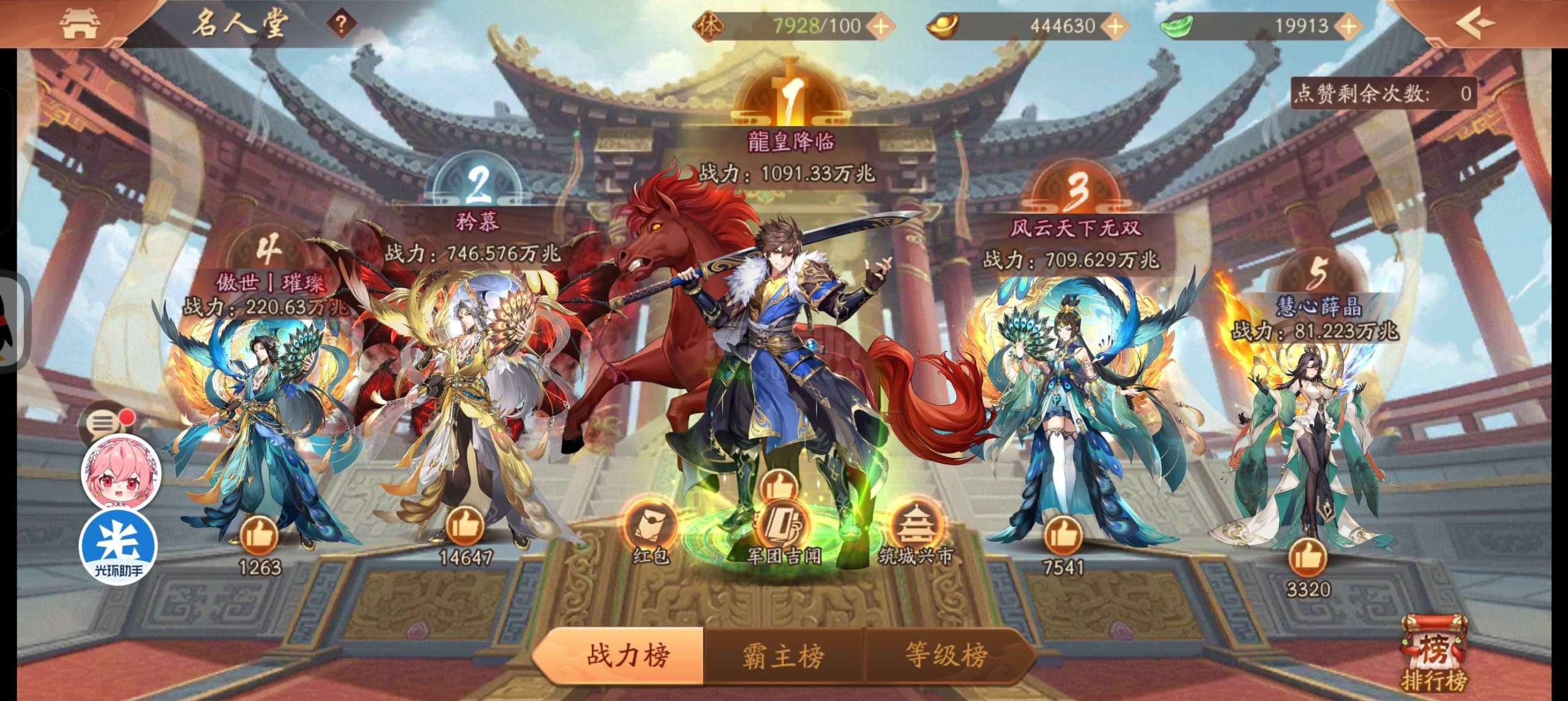武将虹一全满,左慈拉满,其余新首发均已补齐,外加160孃嬛玉,第一世家。 号令礼币和划船礼币充足