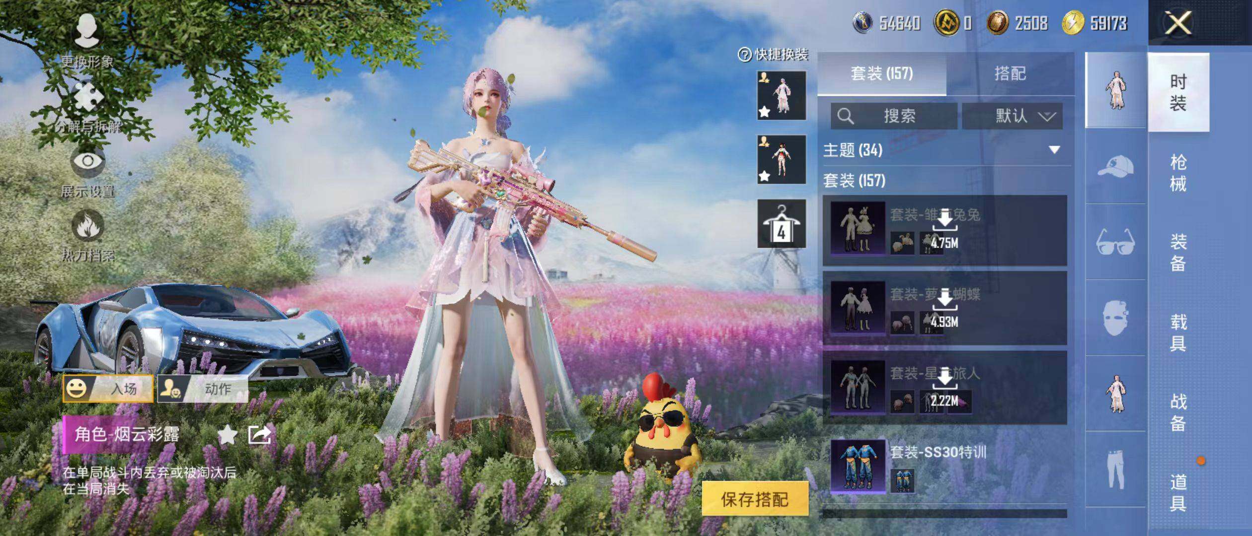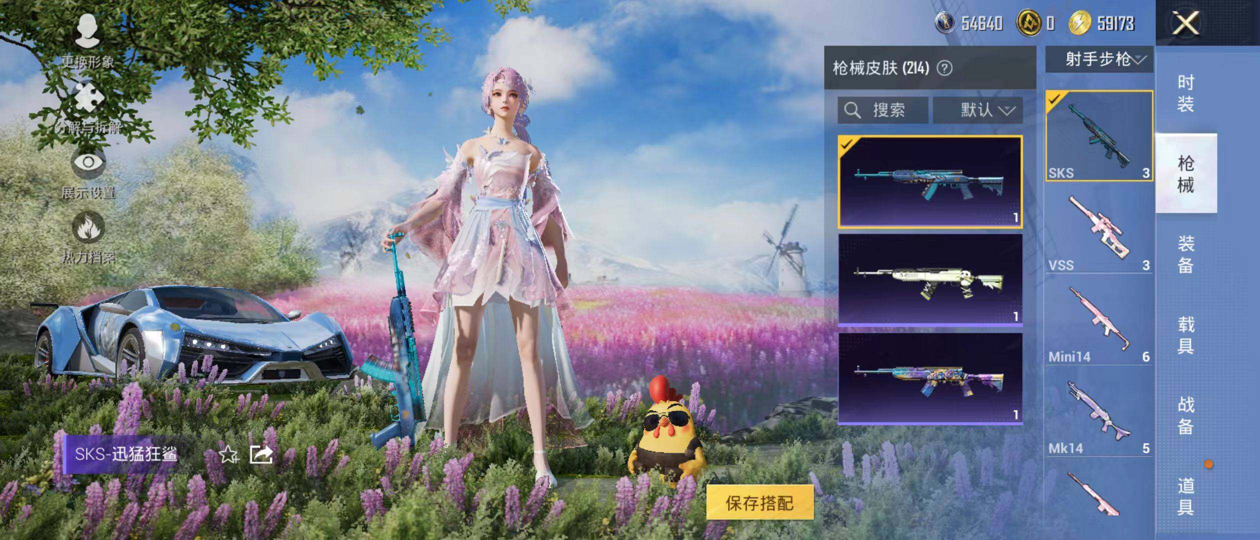 【粉色枪皮等级】:M416-心之恋语(七级),M416-电玩时刻(五级),Kar98K-