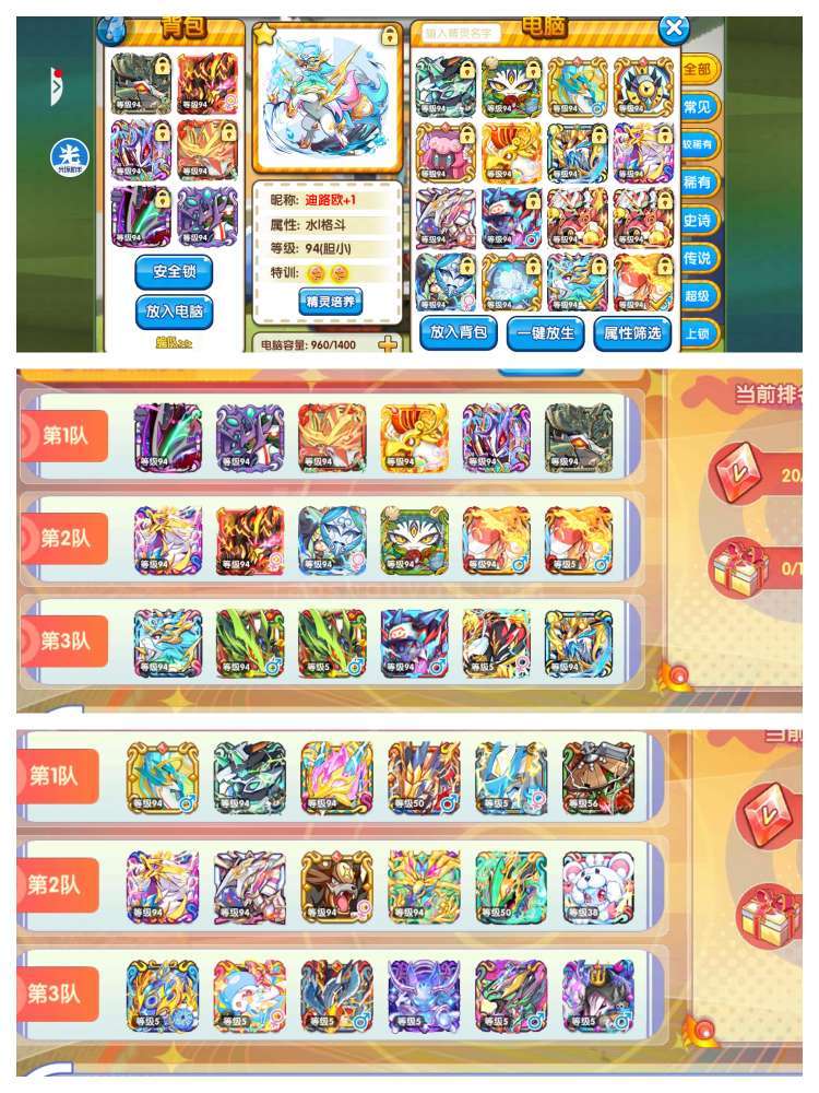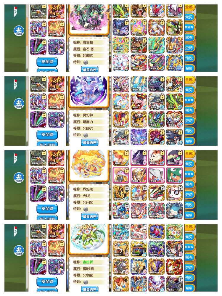94级27个红一特二突破,新专满配闪光洛奇亚,满石板阿尔宙斯,穿刺破空焰,古鼎鹿,新专闪光凤王,新专闪光月神,一击连击闪雄狮,振翼发,新专究极三圣鸟,厄诡碰,2个大招小智喷火龙,2个小智蜥蜴王,新专凯路迪欧,新形态拉提奥斯,小智耿鬼,古剑豹,还有挺多稀有技能,超多礼盒,看图,绑定都能换
