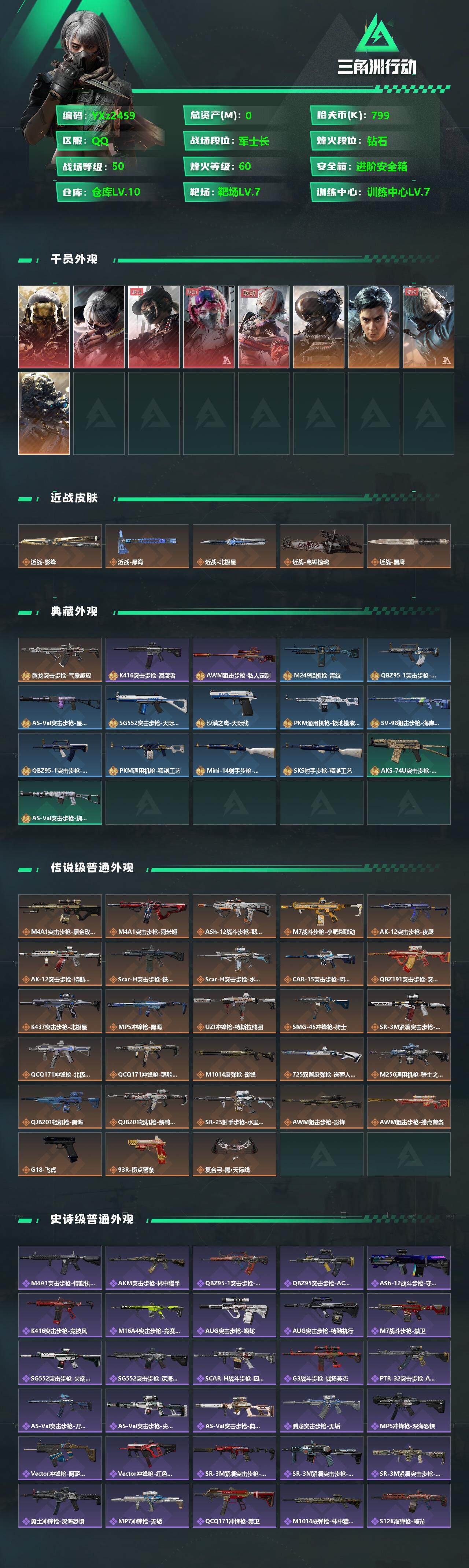 【顶级账号-满红皮号+四刀皮+总资产300M+腾龙气象感应】【影锋+黑海+北极星+电锯惊魂+腾龙气象感应优品S】【威龙飞虎+蚀金玫瑰+水墨云图+维什戴尔+黑天际线+午夜邮差】【无二次】YXz2459-特勤处:仓库10级/训练中心7级/靶场7级-总资产306m-哈夫币79w-烽火等级:60级【勾选了部分账号,详细看图,平台认证商家店铺,保证金商家,安全有保障,性价比超高,永久包赔】