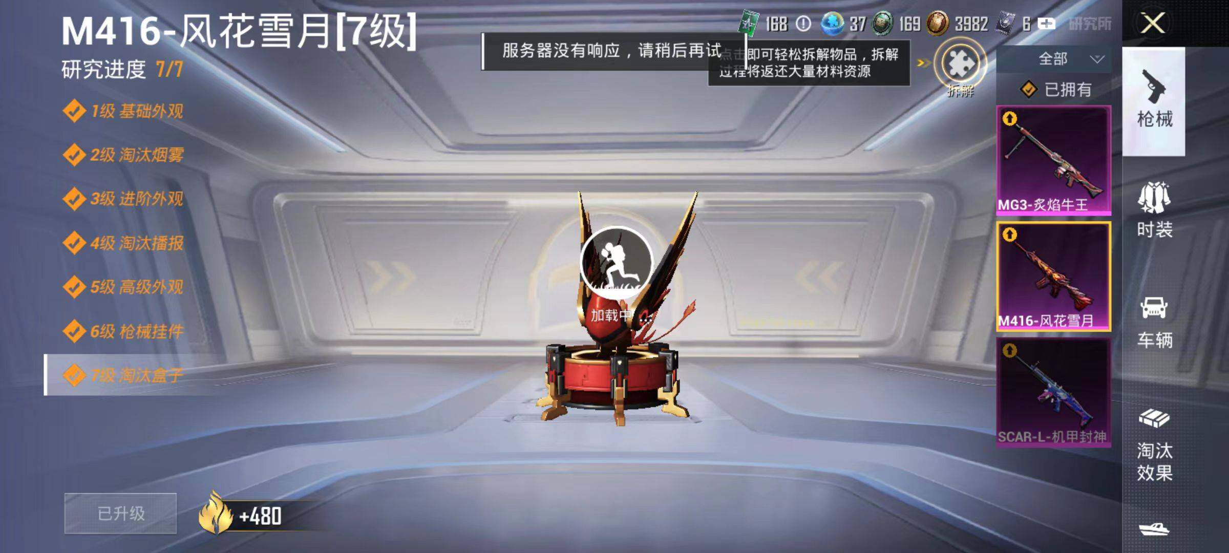 【特效枪等级】:SCAR-L-机甲封神(七级),M416-风花雪月(七级),MG3-炙焰牛王(五级)
