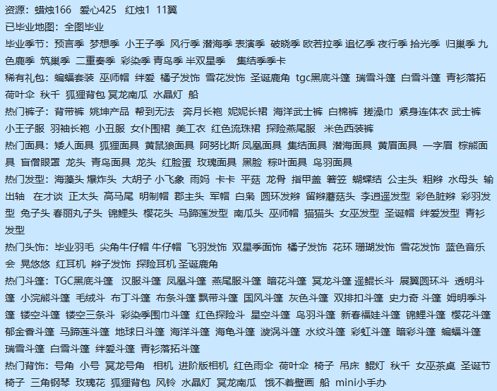毕业季节:预言季 梦想季 小王子季 风行季 潜海季 表演季 破晓季 欧若拉季 追忆季 夜行季 拾光季 归巢季 九色鹿季 筑巢季 二重奏季 彩染季 青鸟季 半双星季 集结季季卡