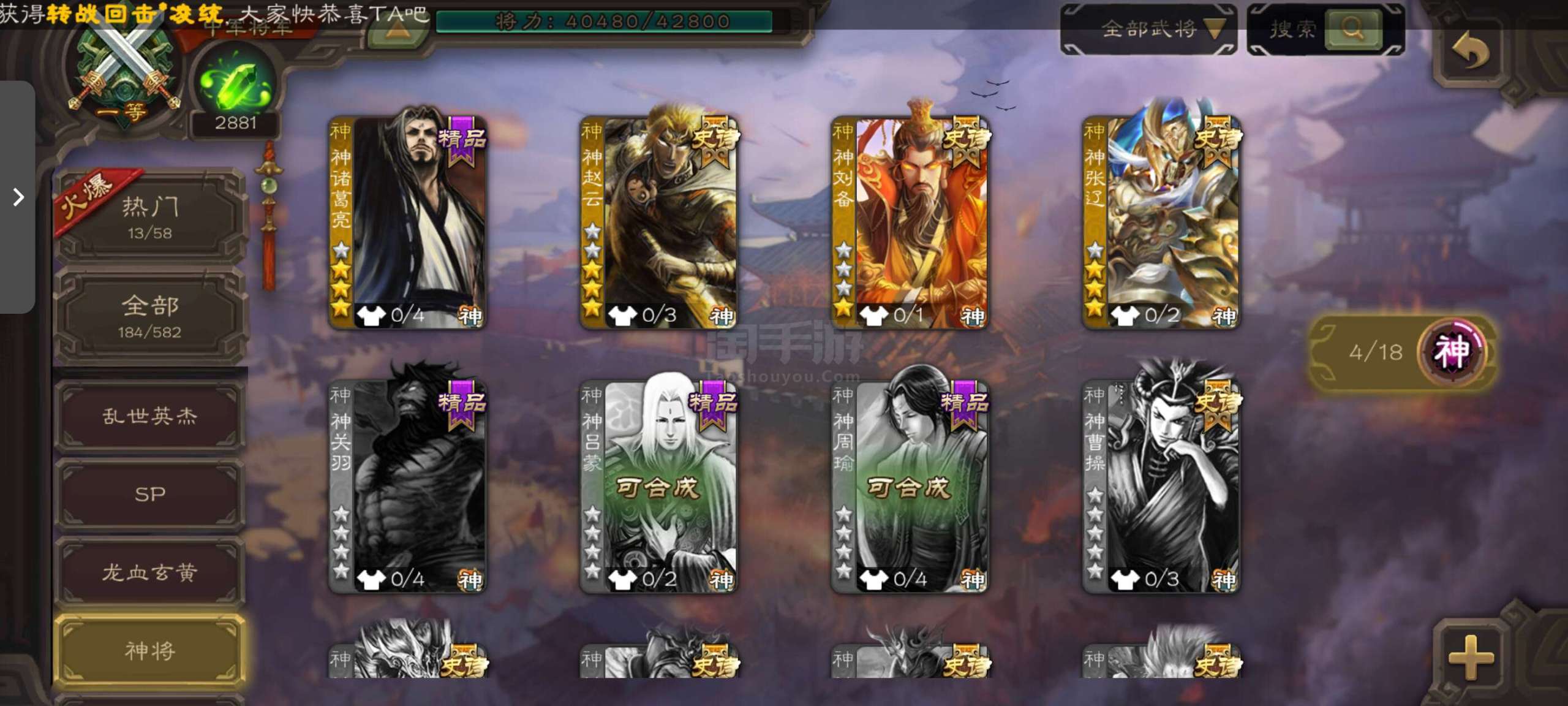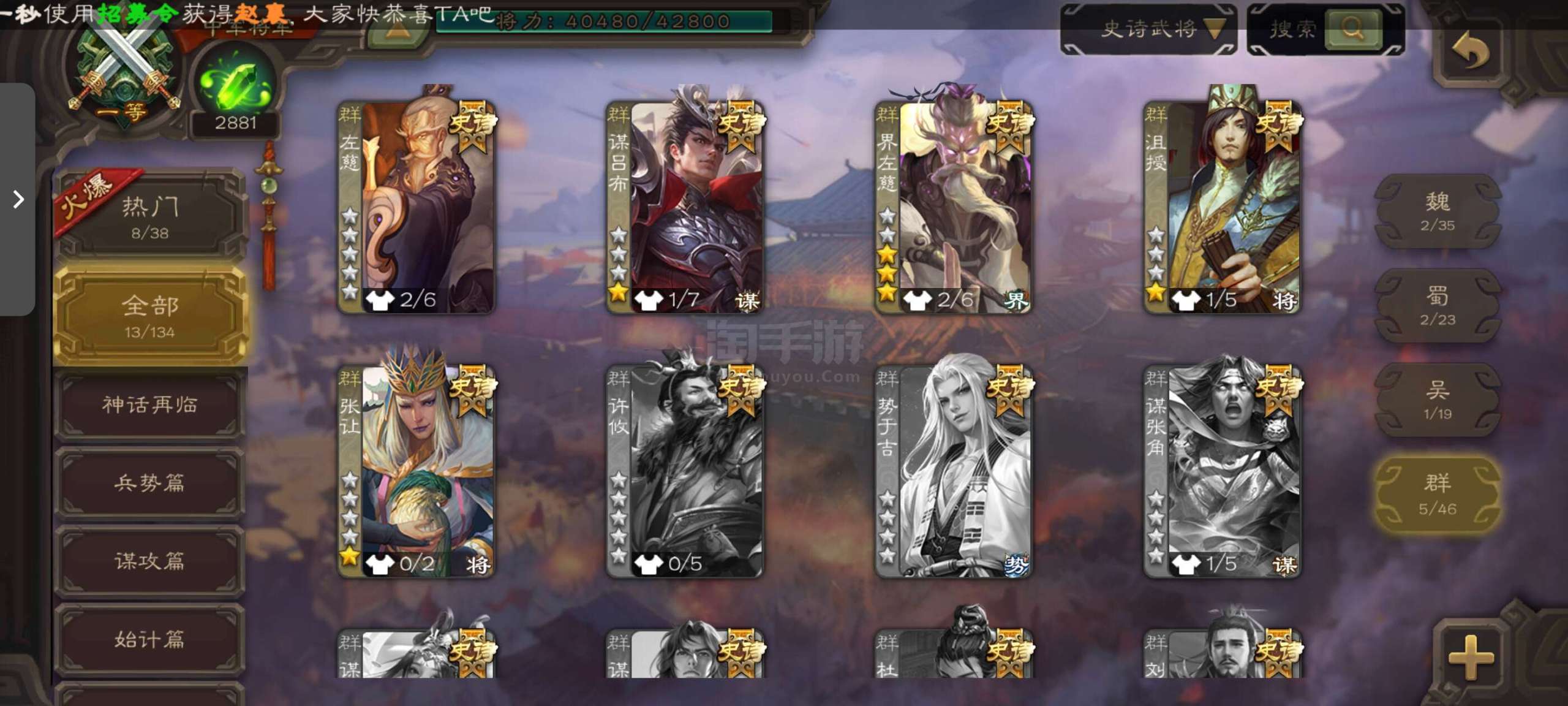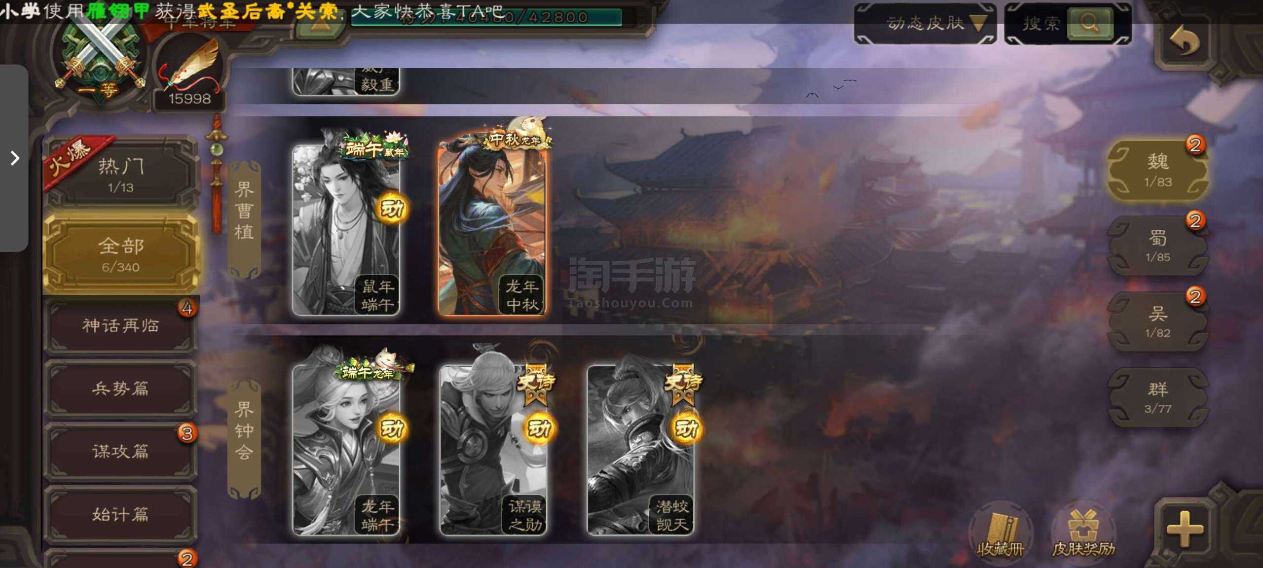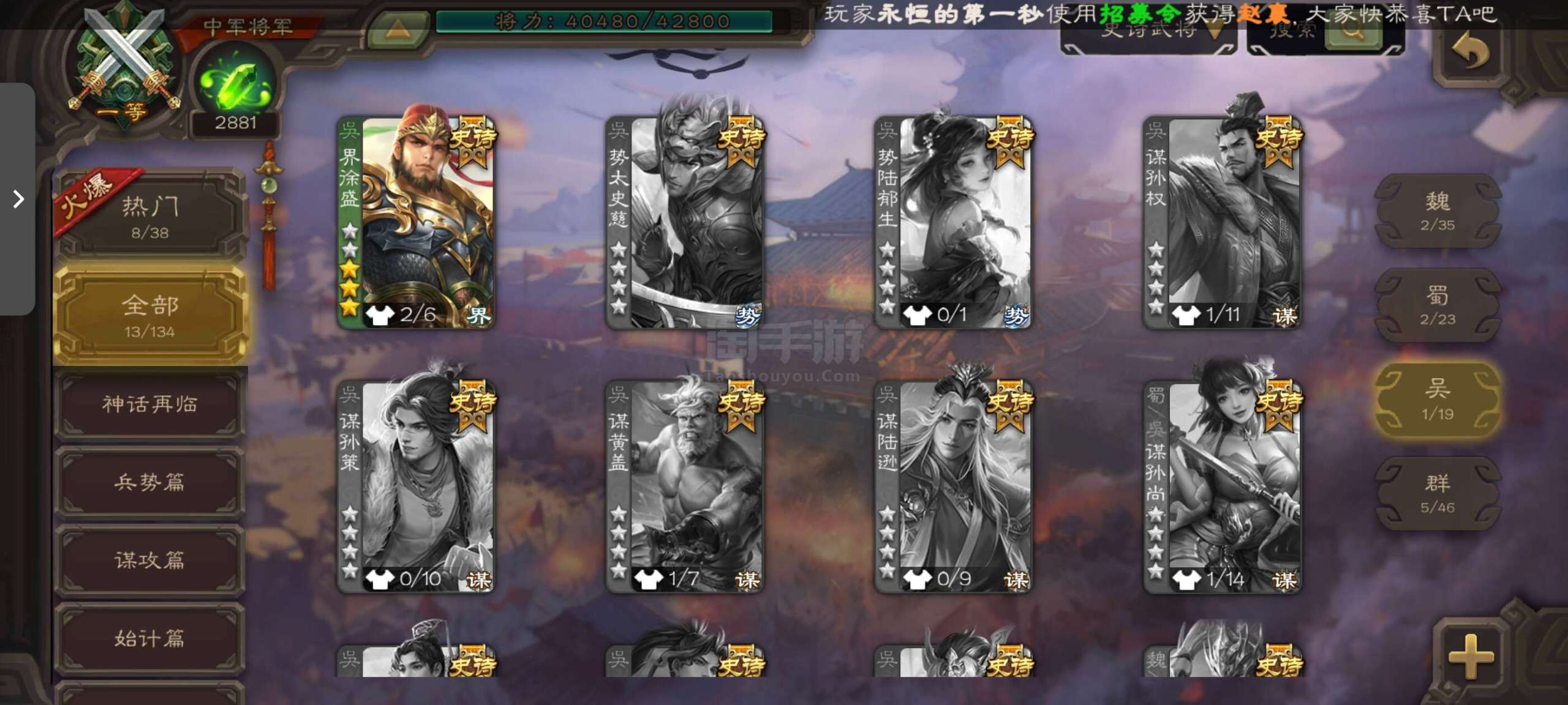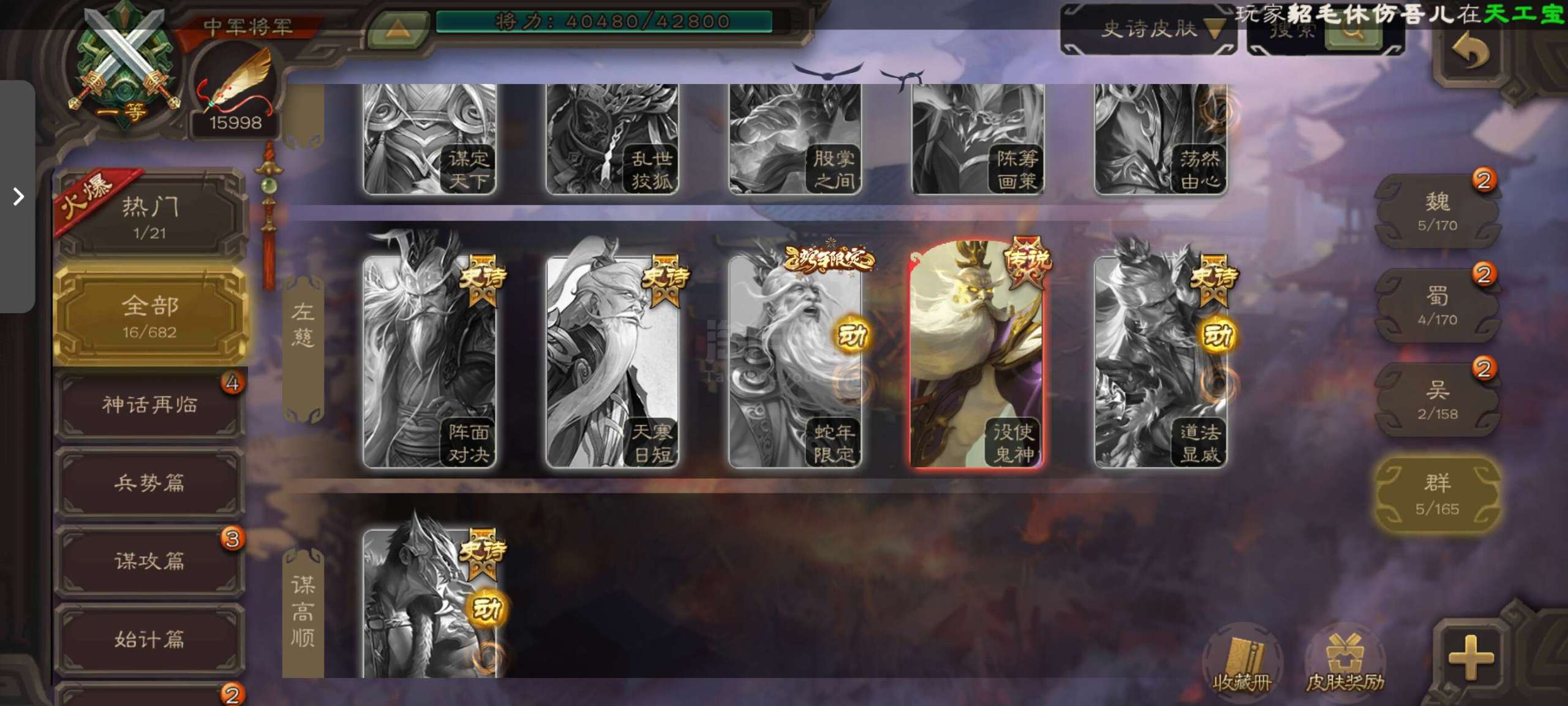 谋吕布、界徐盛和动皮,界左慈金皮,戏志才,神赵云神刘备,沮授大人。