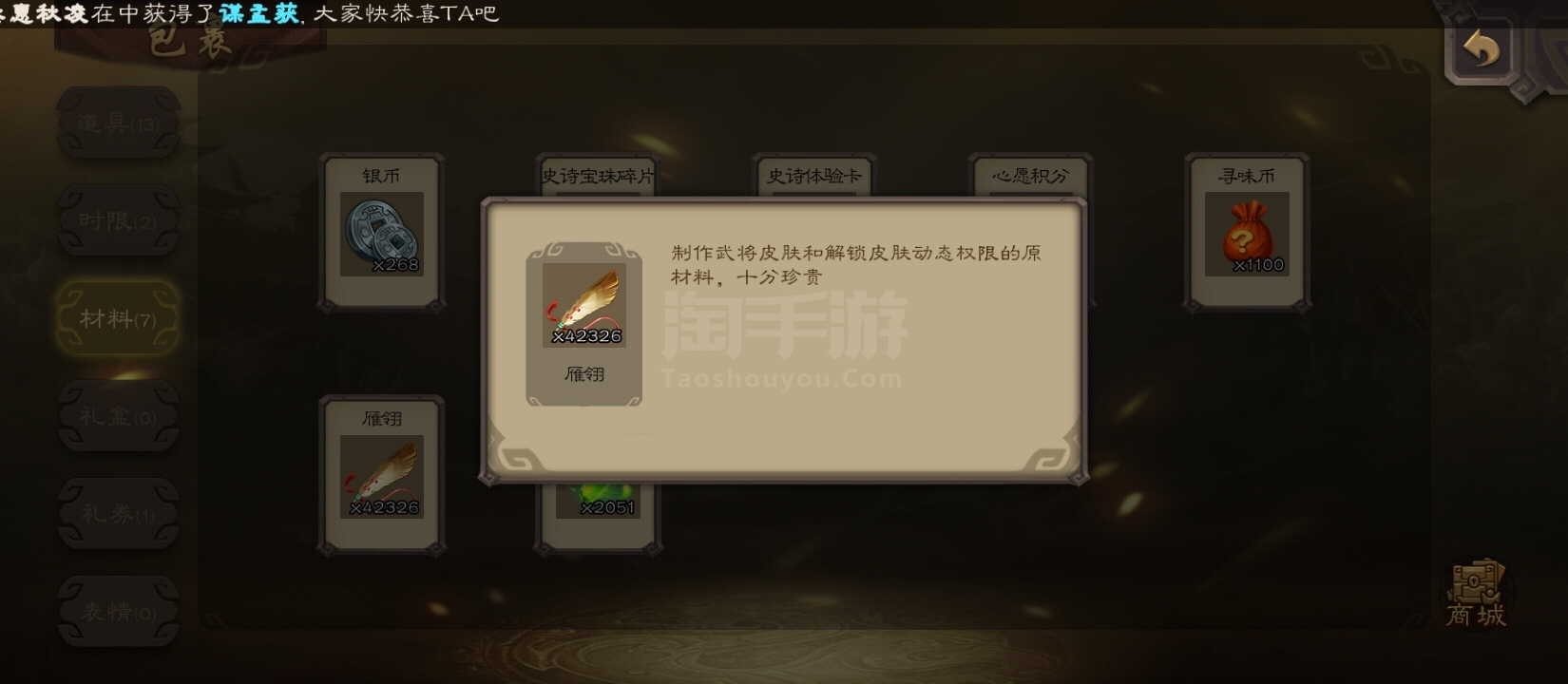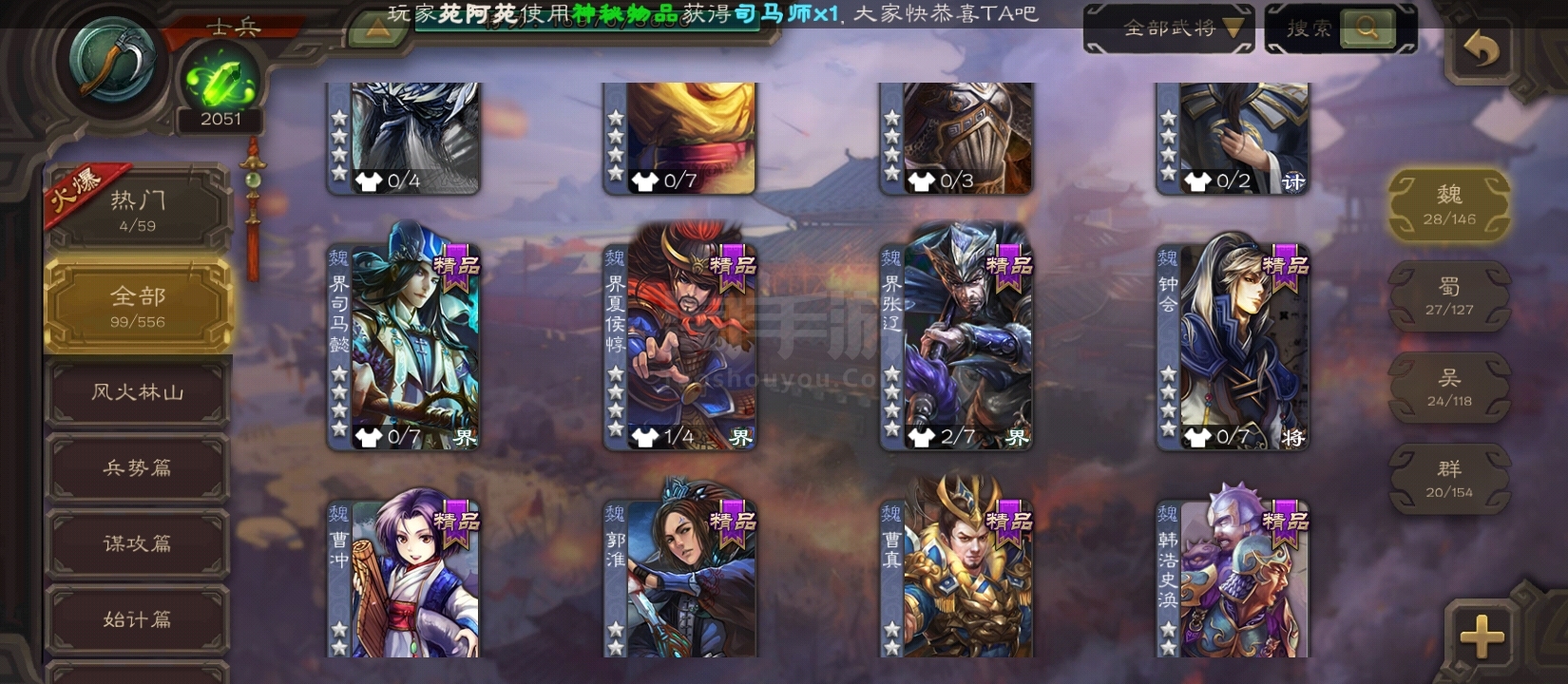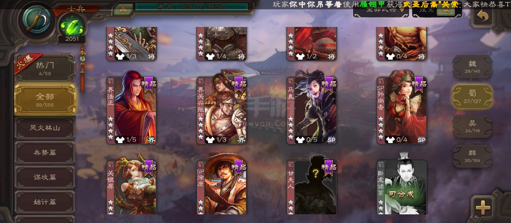 游卡字母号士兵戏志才4万羽毛等等精品武将可换绑