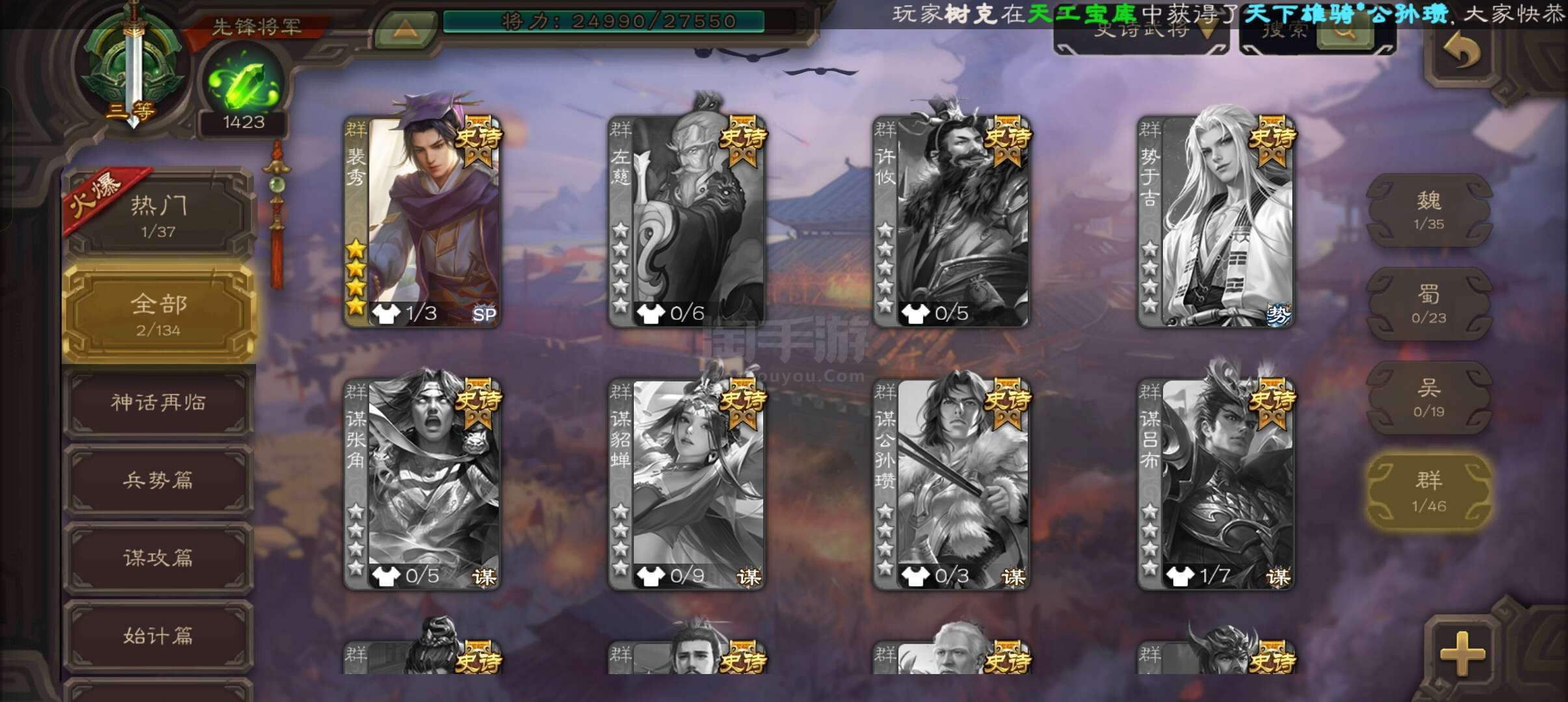 三国杀【安卓官方】捡漏玉龙裴秀/戏子无限点将