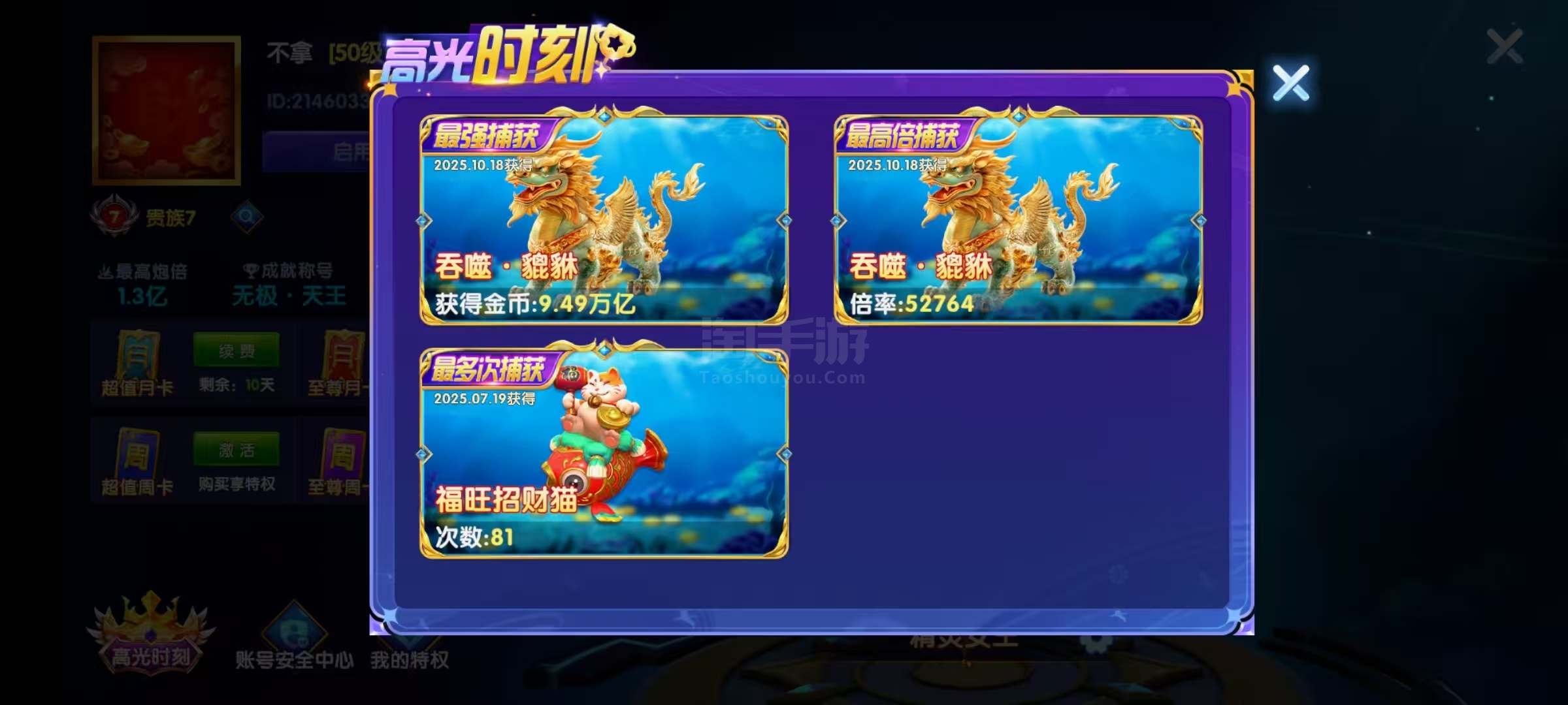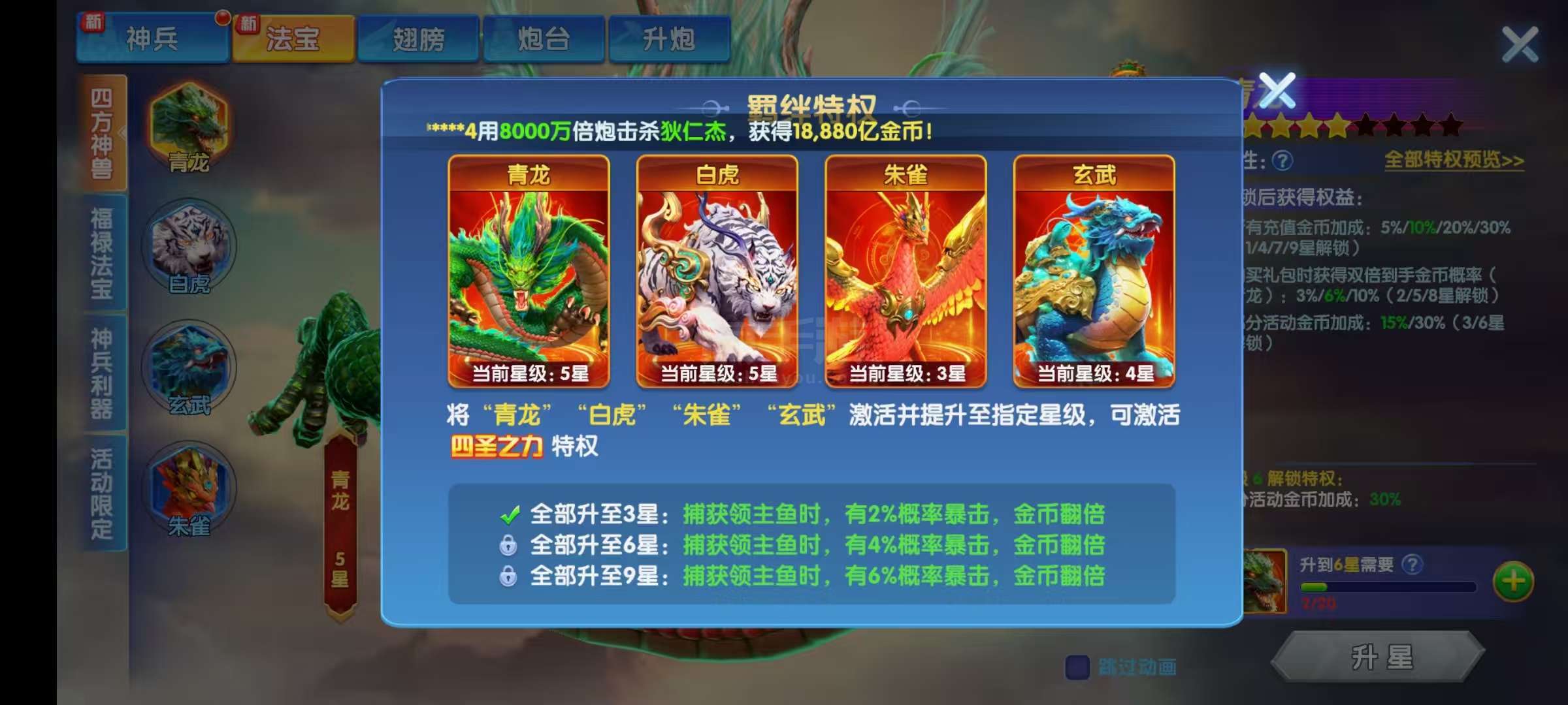 乐乐捕鱼【安卓官方】官方文字v7高爆发号带15万亿金币,羁绊好,九星神兵很多,爆发好,带号出。