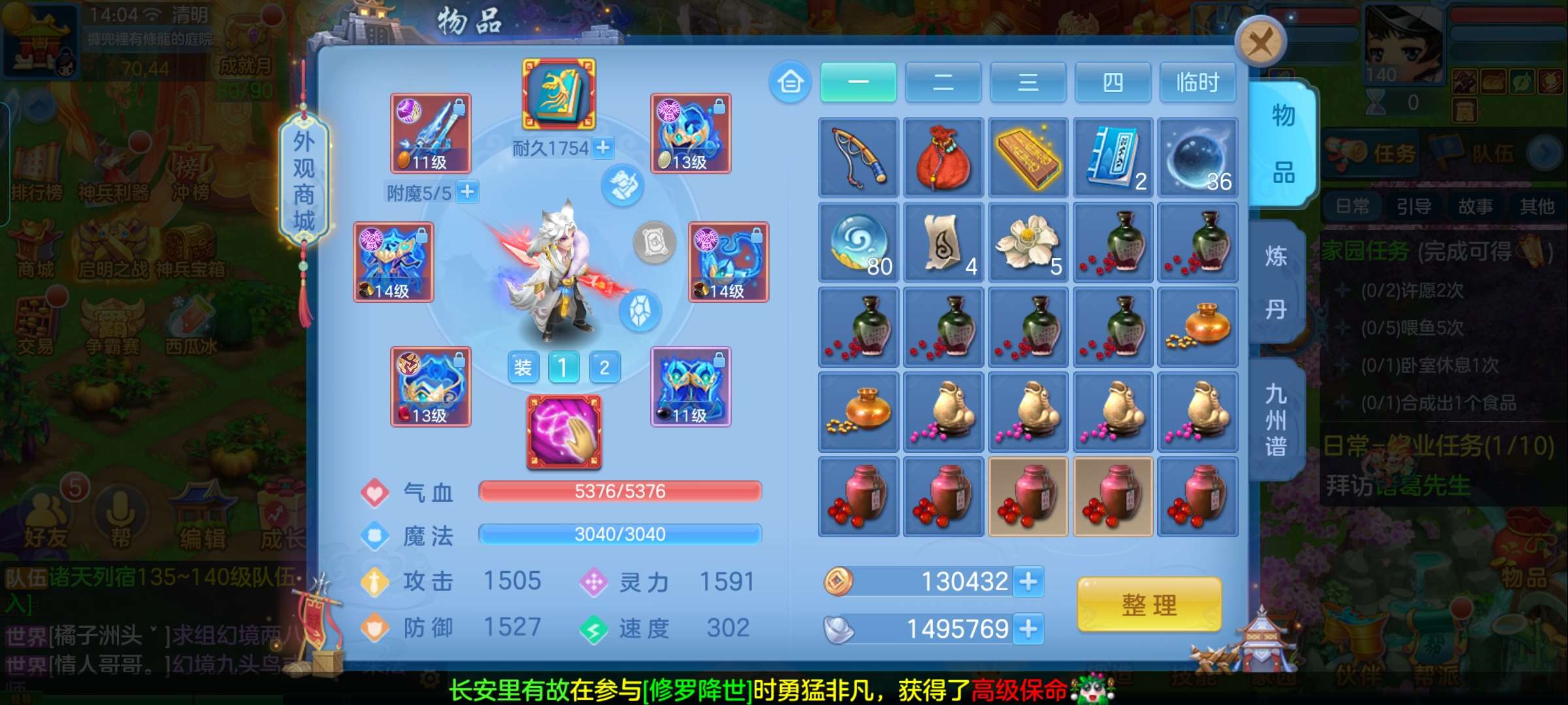 阳春140盘丝,12段,七天换绑,宠物栏开满,有庄园。四套加点。满强身。宝宝毕业。