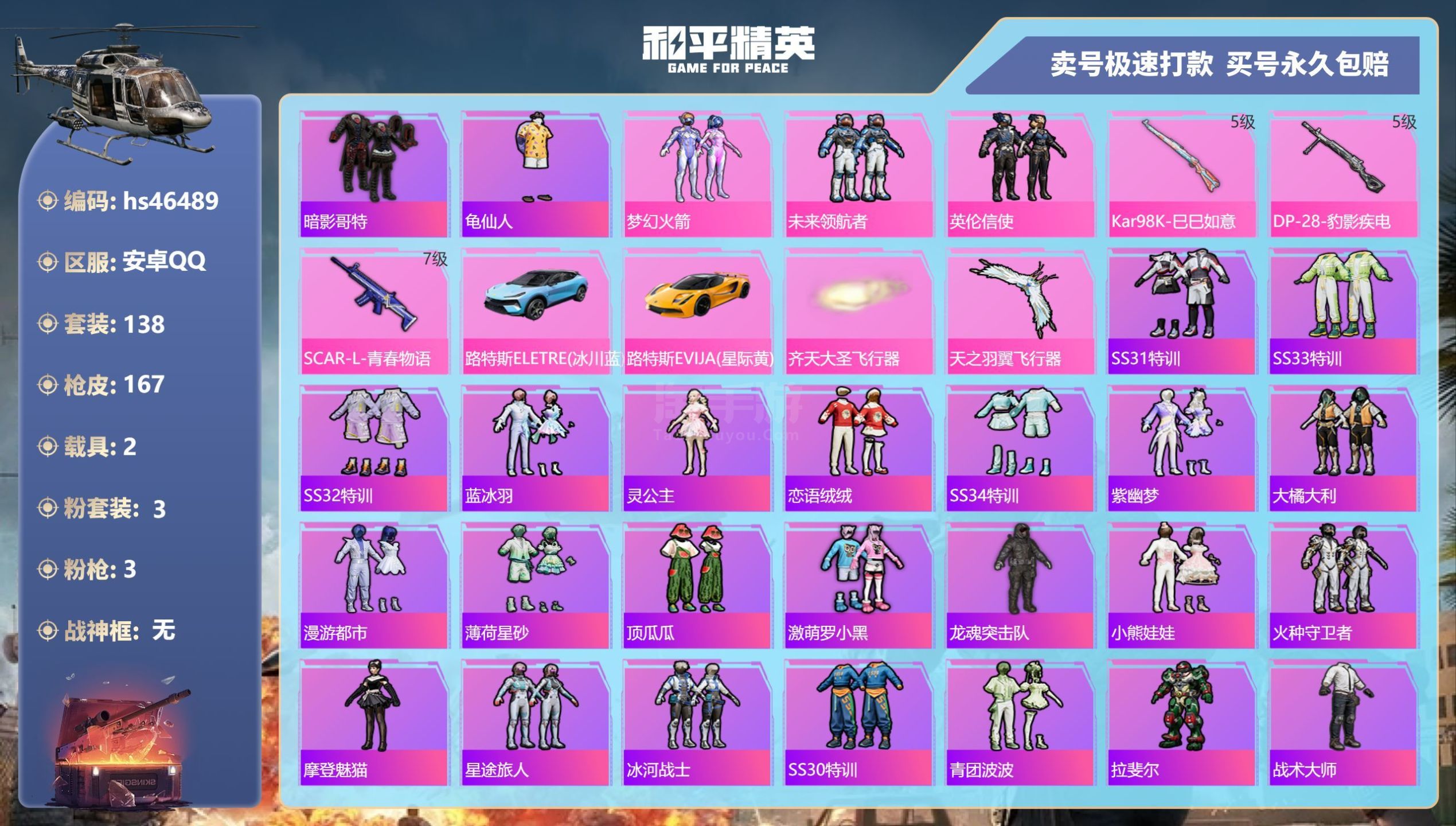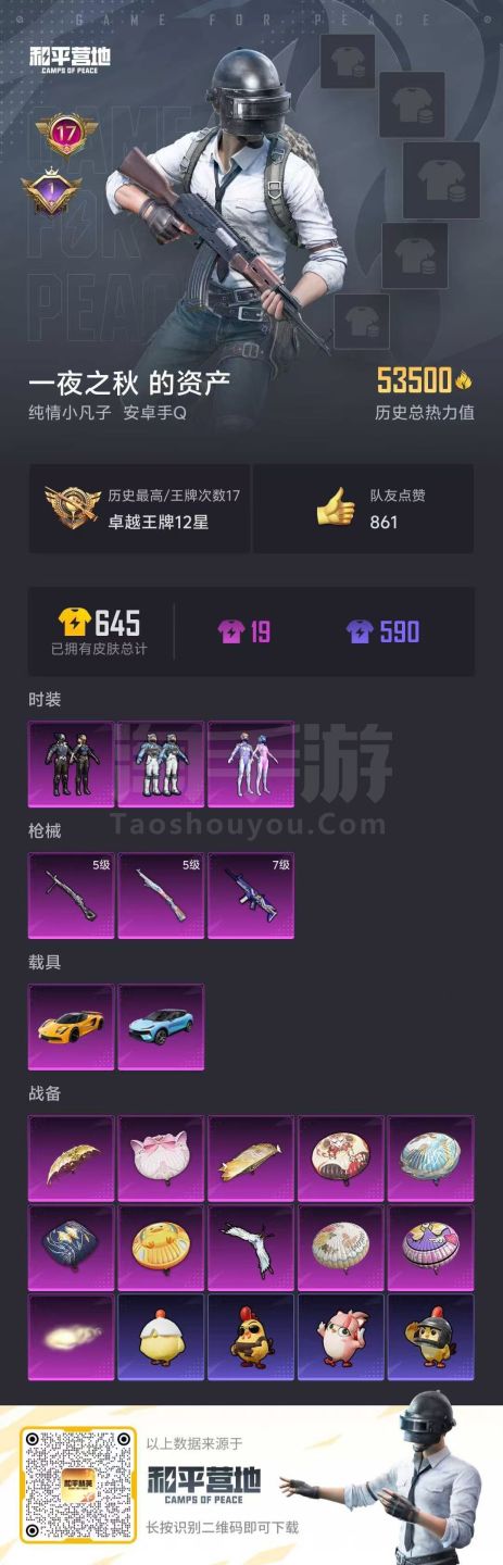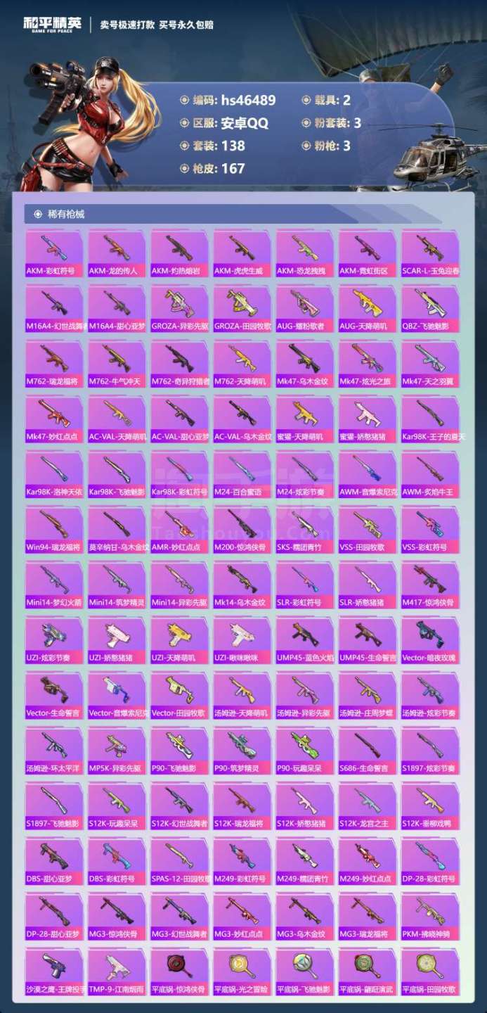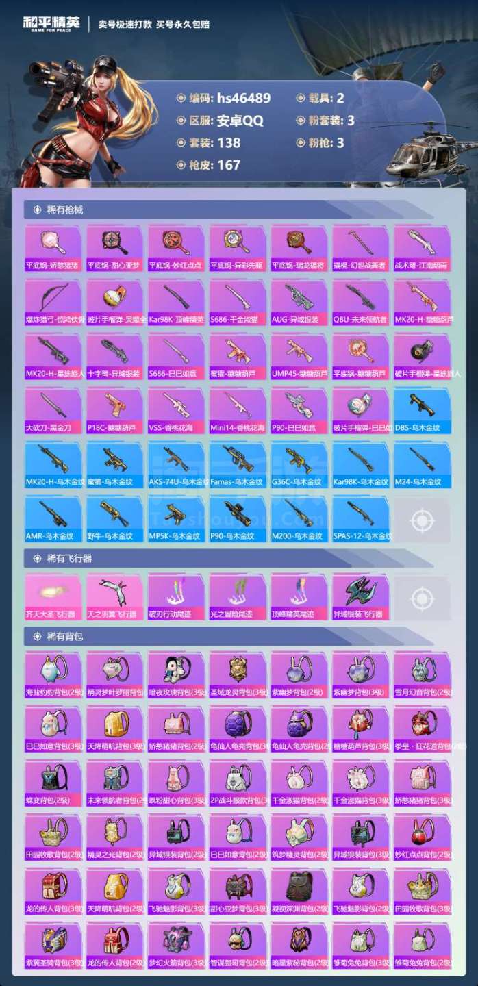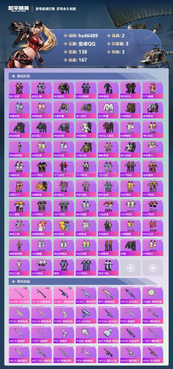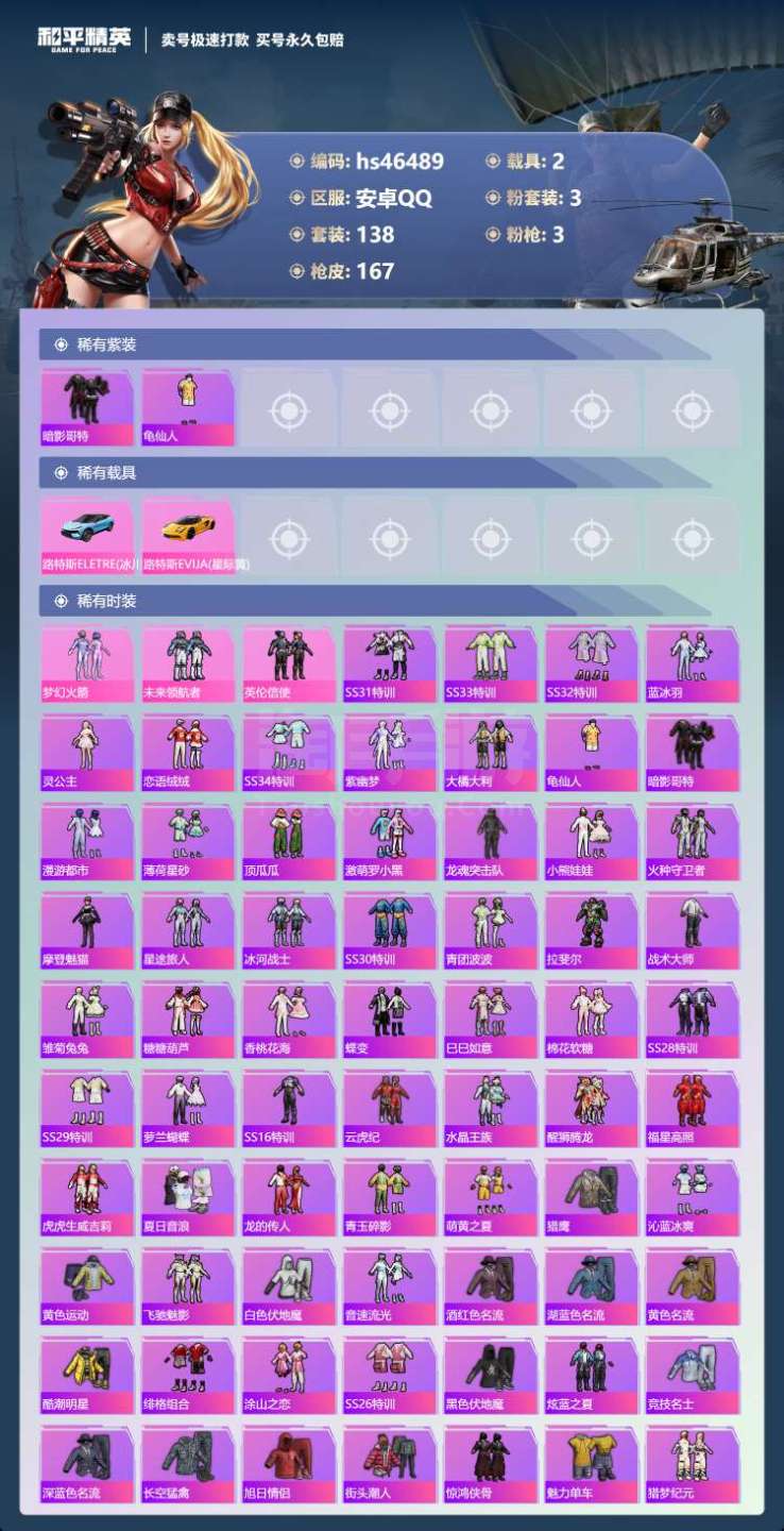 hs46489 安卓手Q-17王牌印记-3粉装-3特效枪-2载具-53515热力值-138套装-16