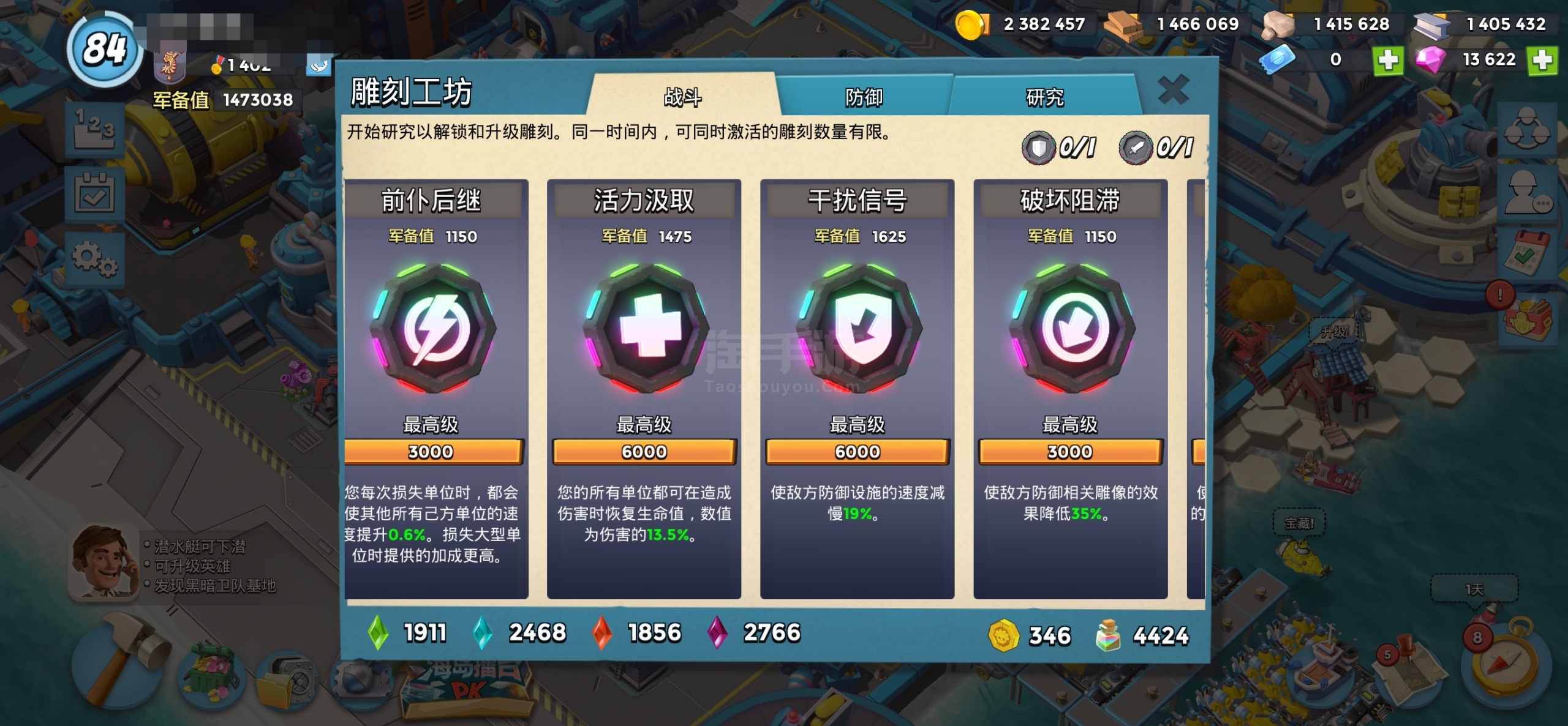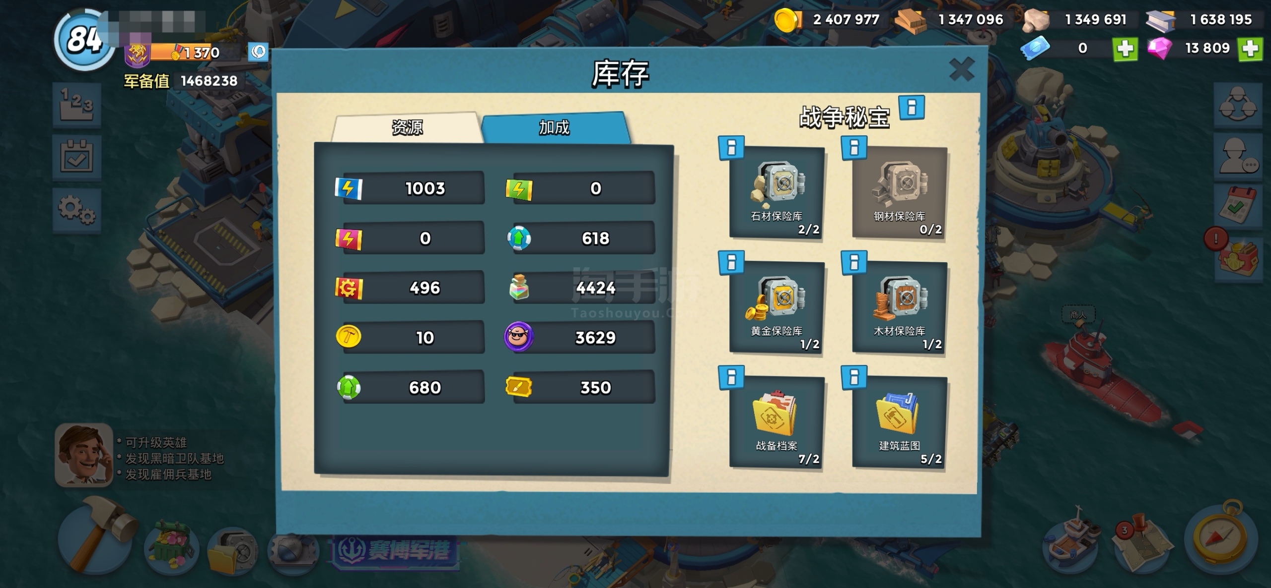 满级沙鱼旁蟹号,1.3W+钻,合药6K+,满雕刻,三次战令