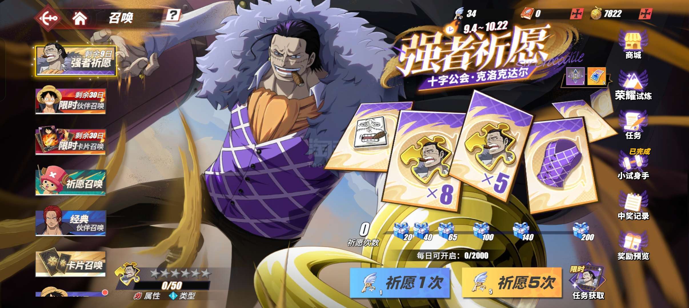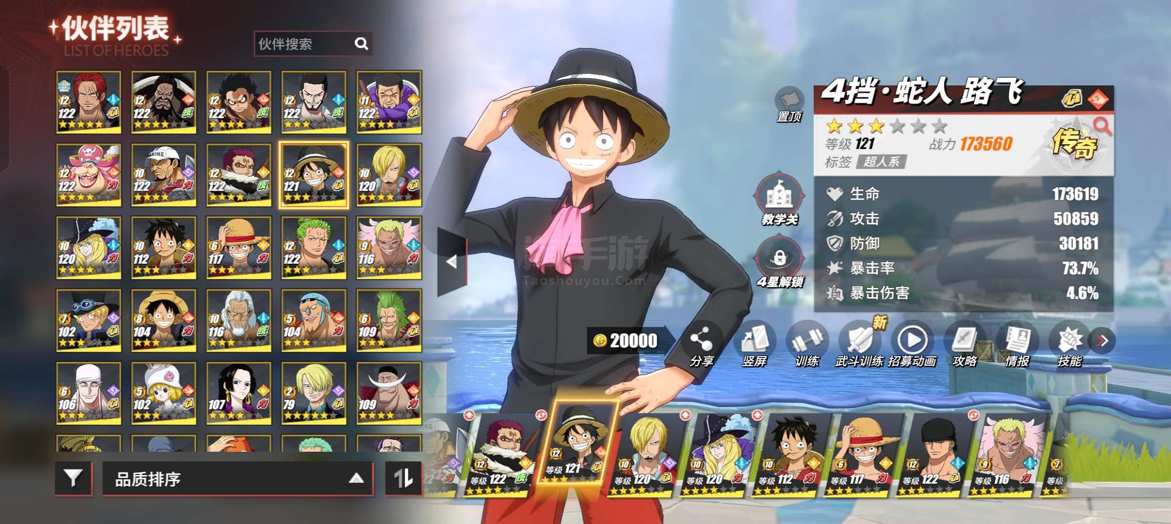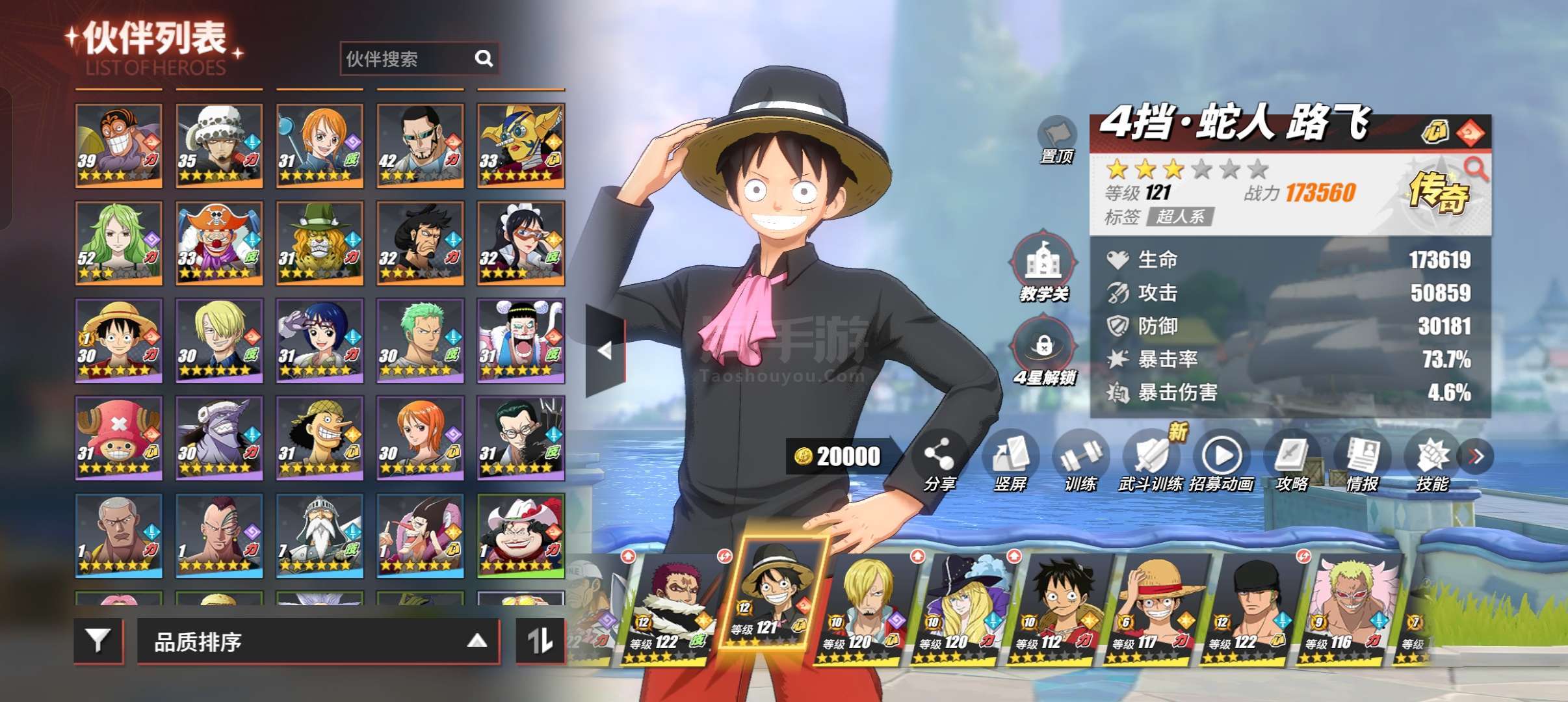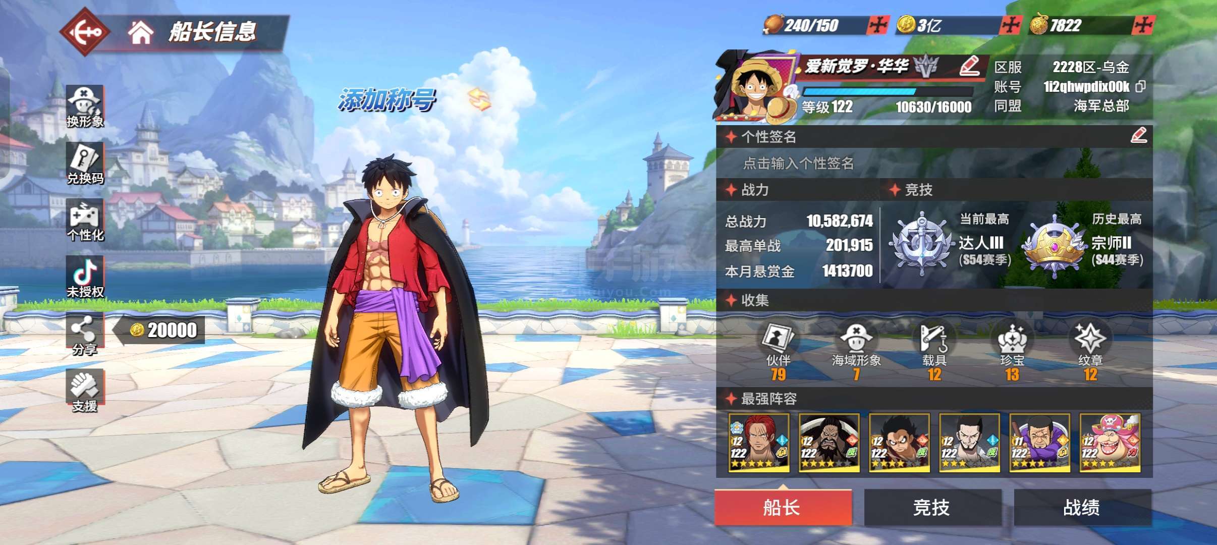 航海王热血航线【安卓官方】44传奇伙伴,33强者钥匙,7千金果,37高招,50段位保护卡,藏宝图