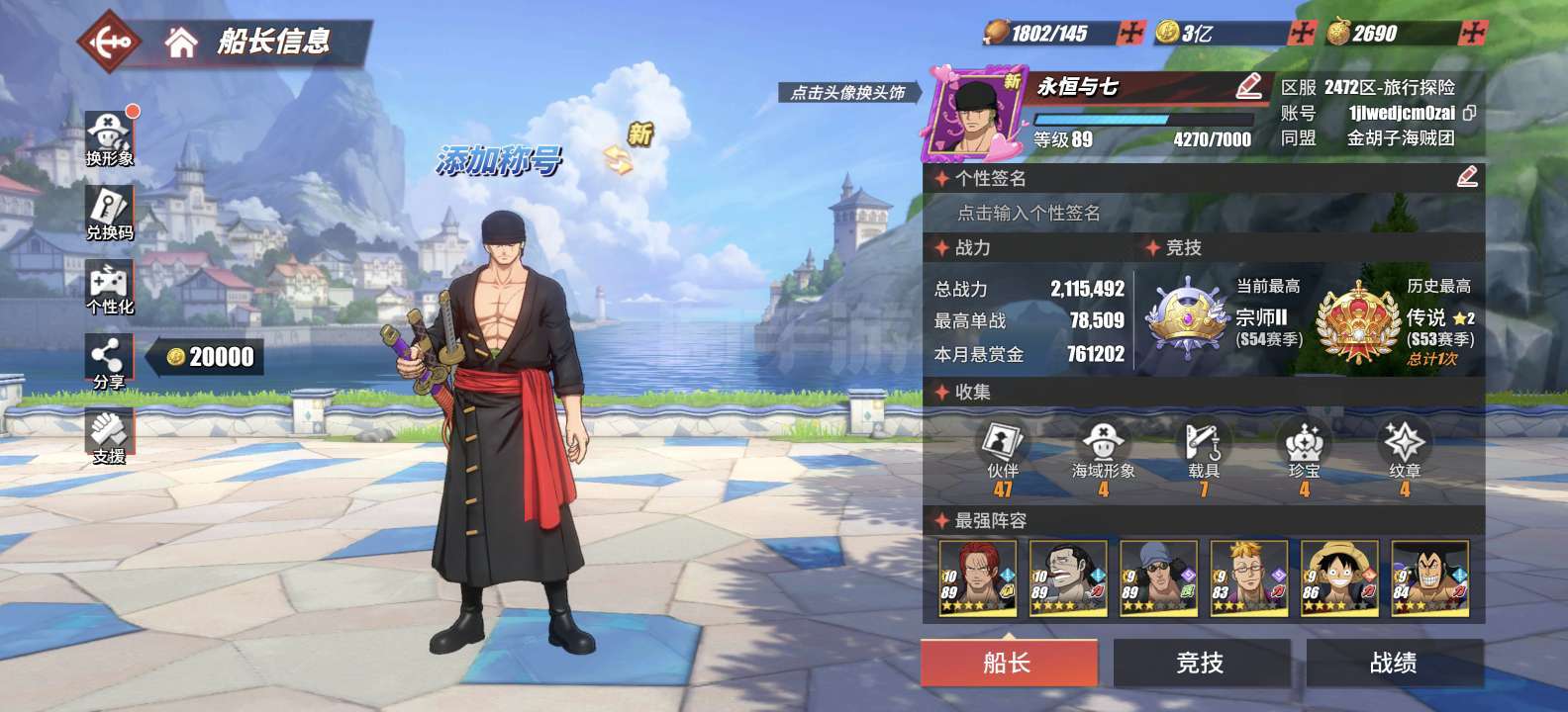 航海王热血航线【安卓vivo】小号 竞技场打的多....