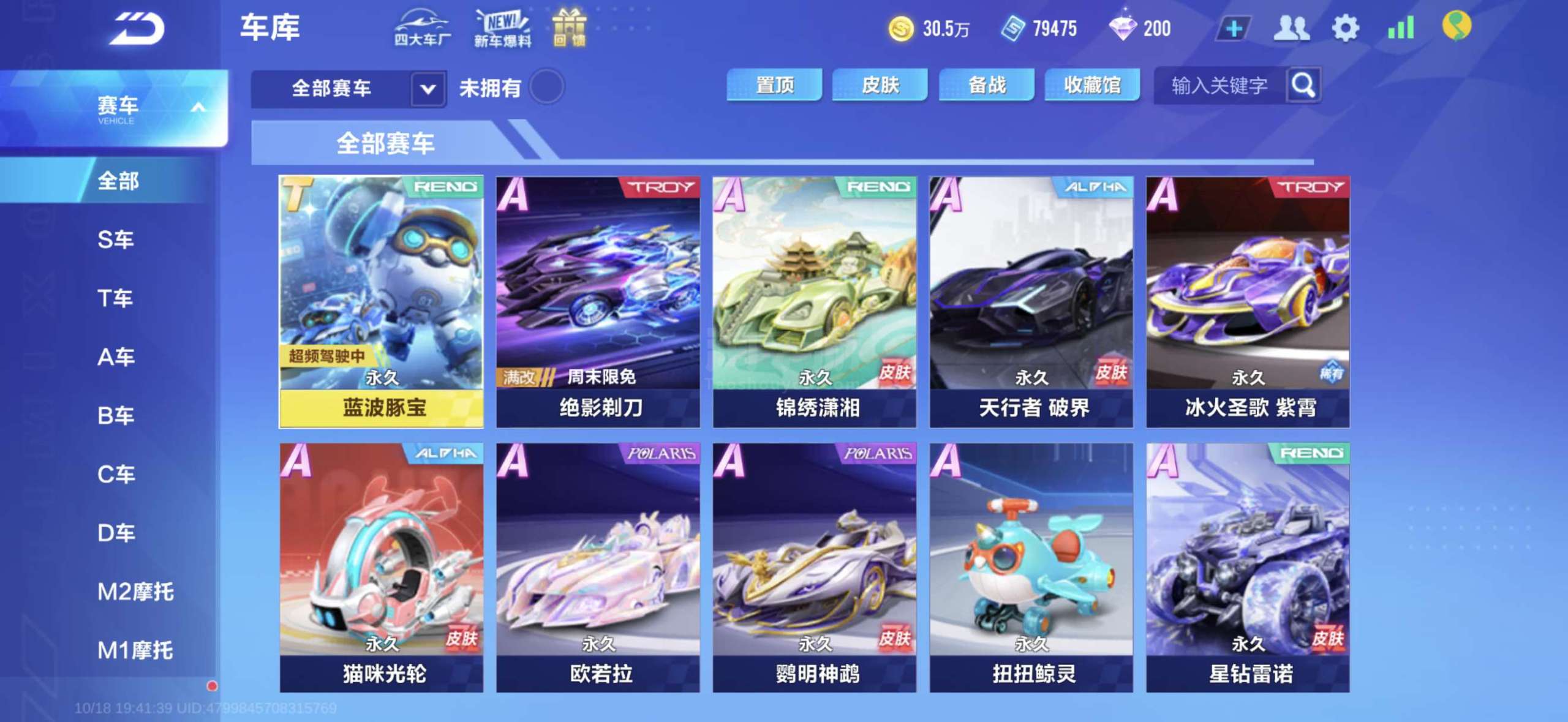 无4,9位数 1T,2联赛最强车神,23A,S指挥官,S天行者,L清,星钻雷诺,30万金币,8万点券