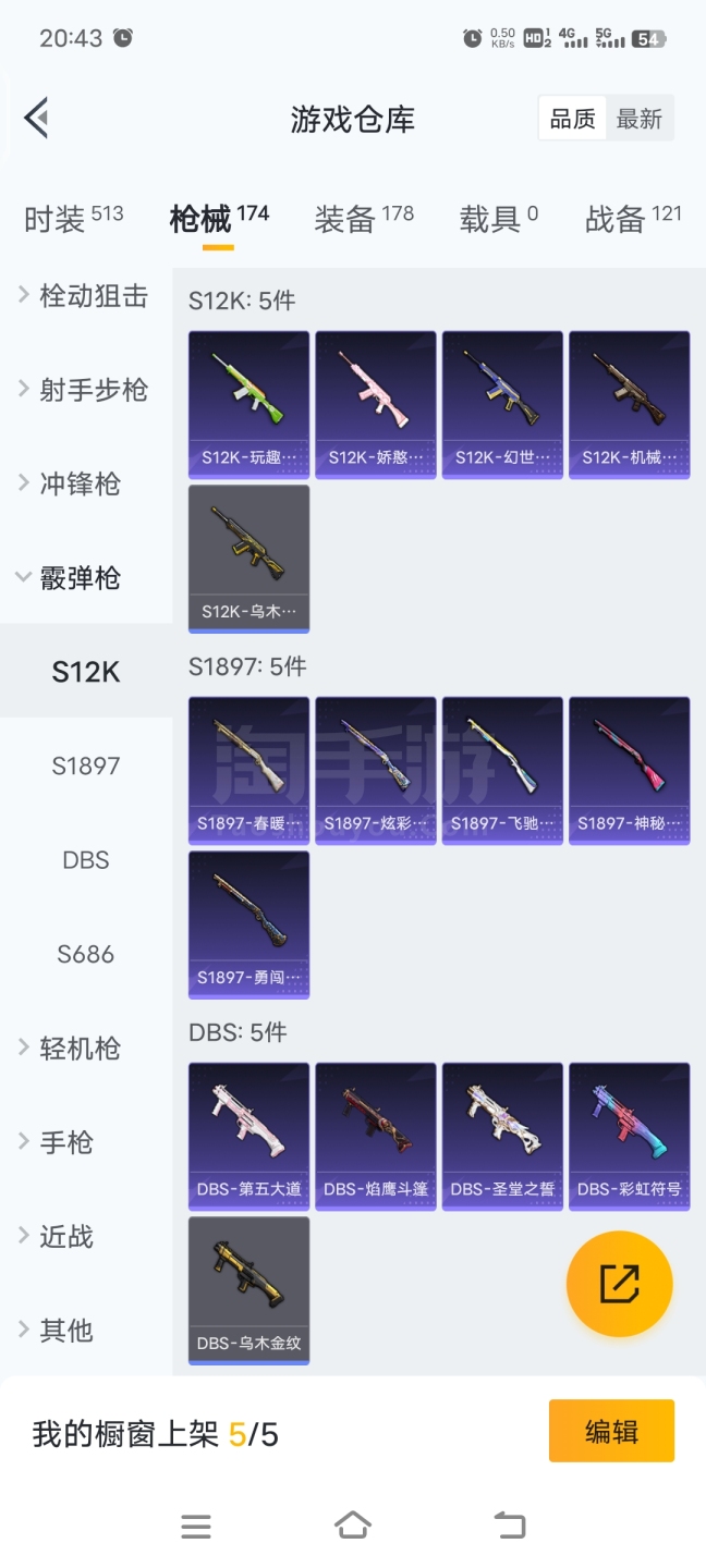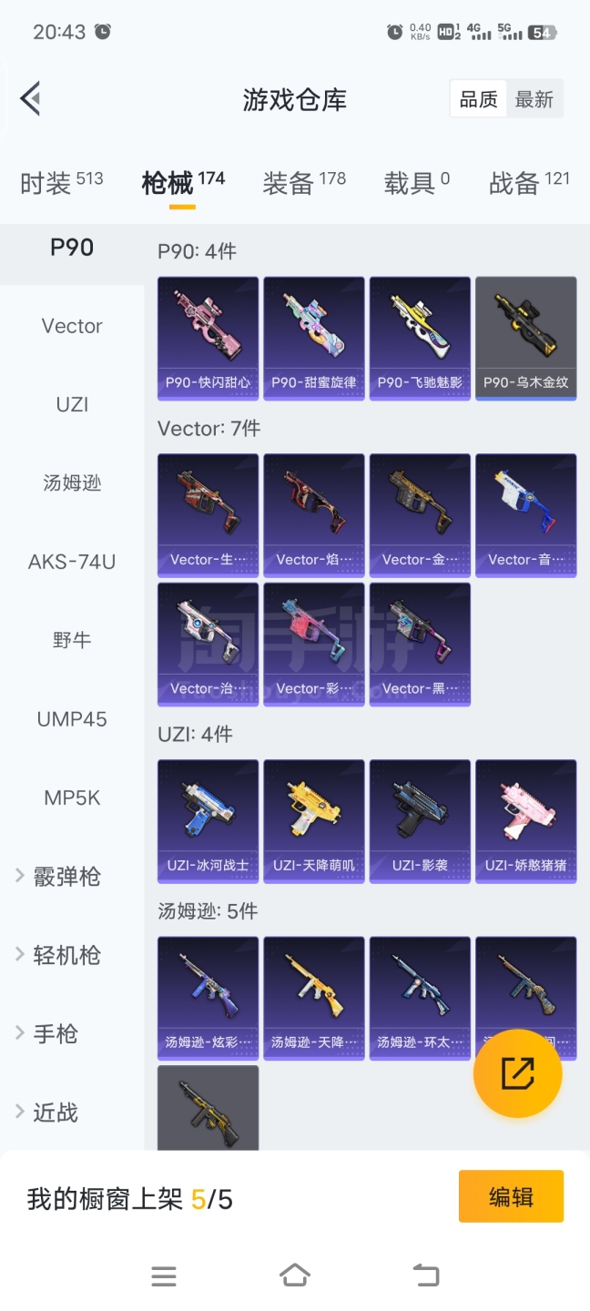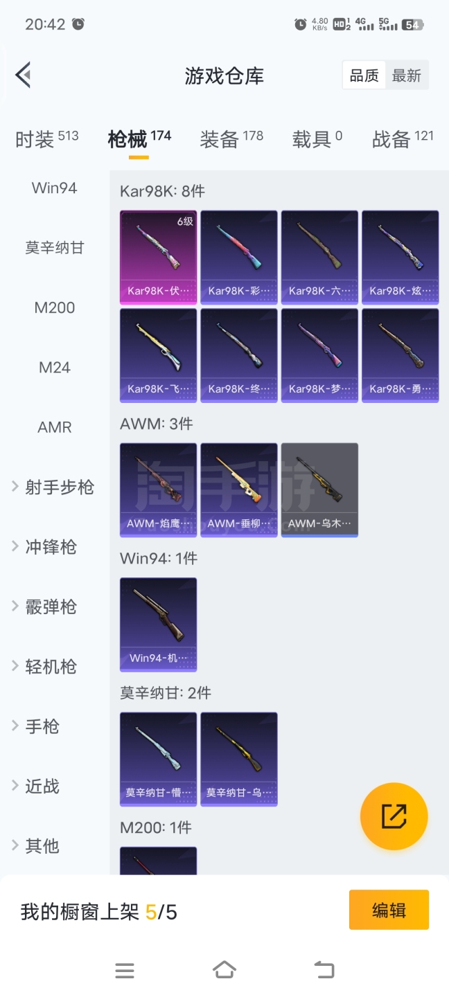 梦幻火箭等8套粉装,7级心之恋语特效枪,5级scar特效枪,4级98k特效枪