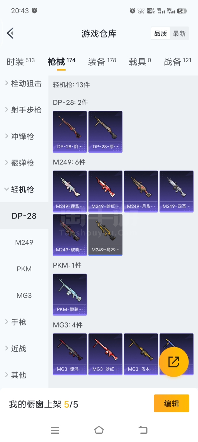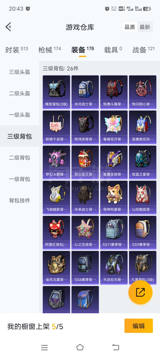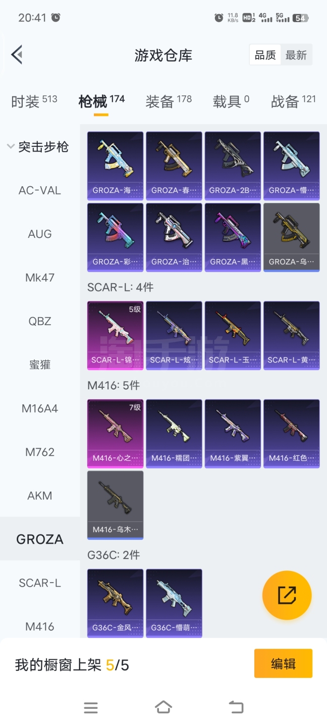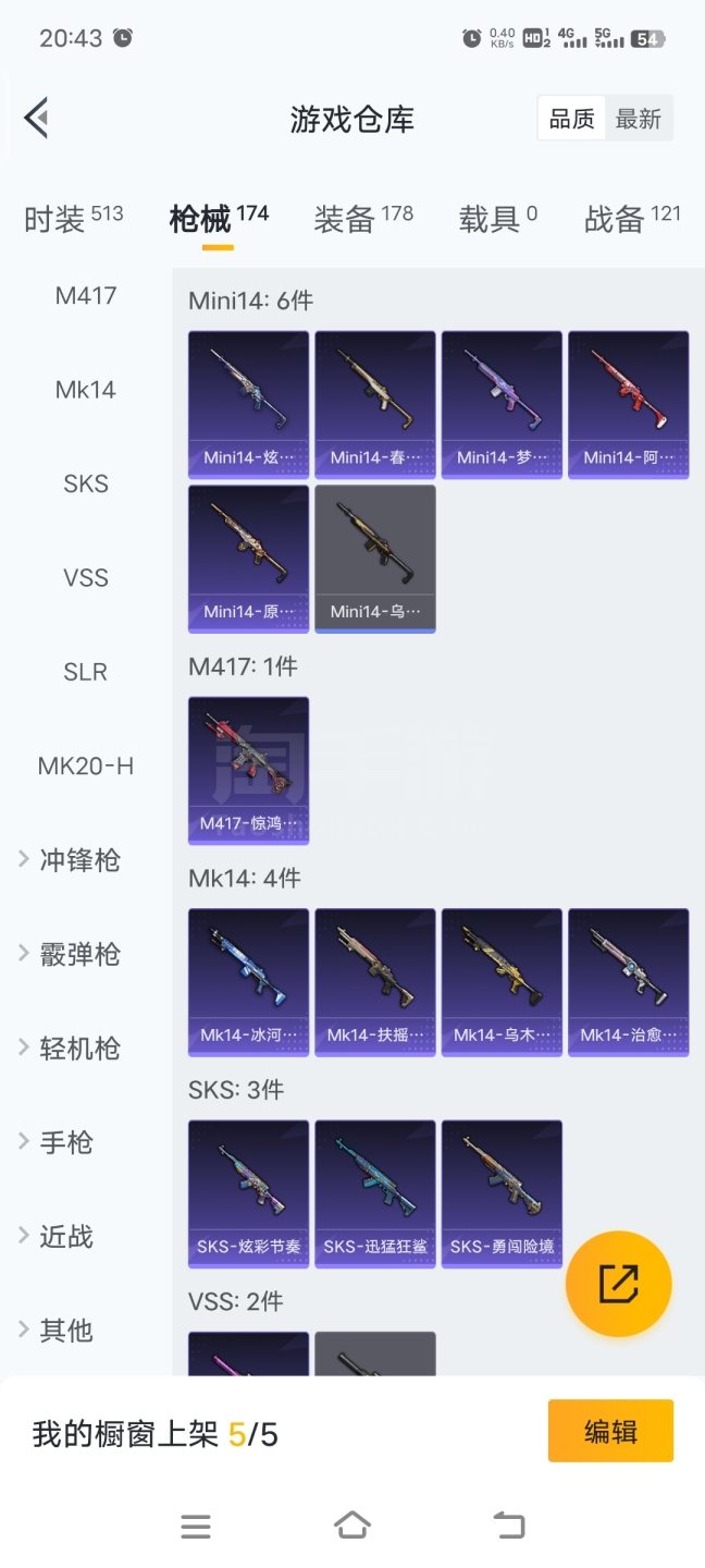 梦幻火箭等8套粉装,7级心之恋语特效枪,5级scar特效枪,4级98k特效枪