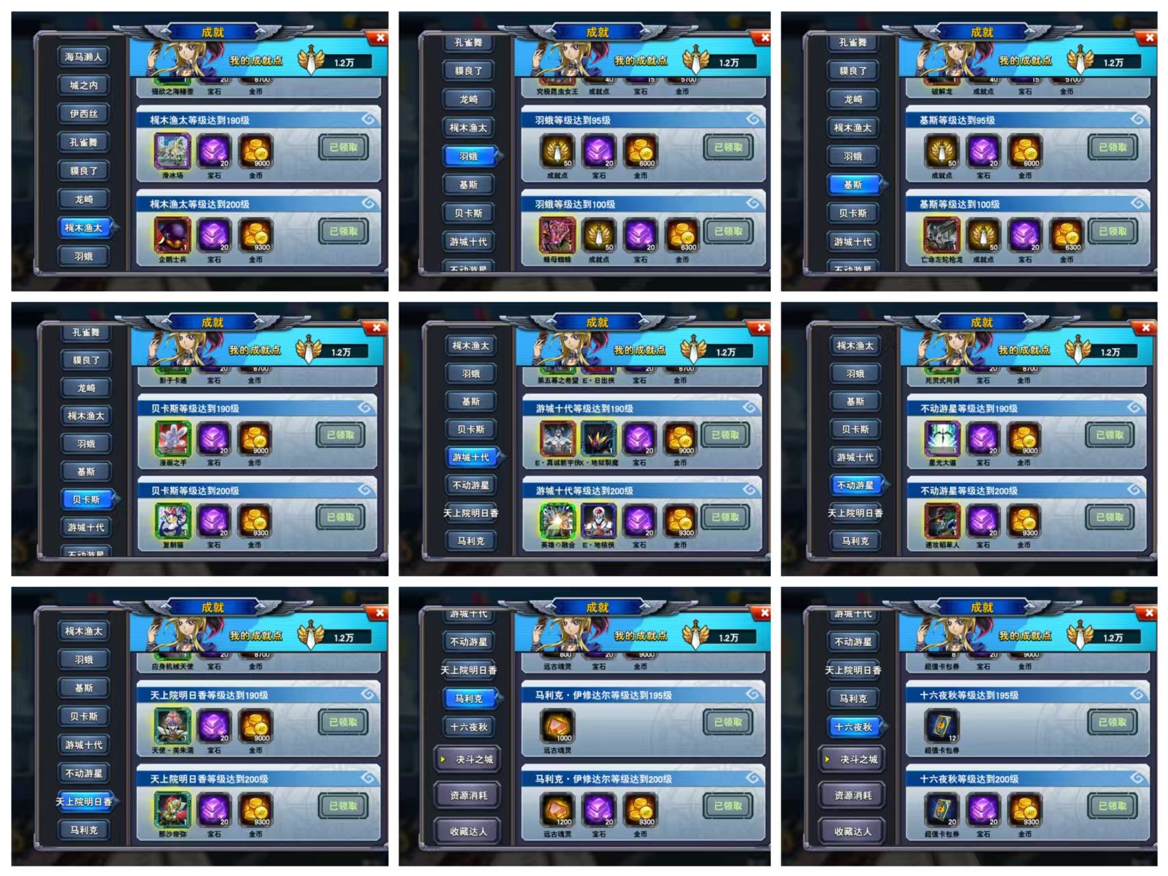 10金冠12银冠13铜冠,334金杯四特,全GR,满档淘气,除贴贴全满档,全卡组顶配。处刑枪管,雪女虹光炎帝神米吕布妲姬,全角色满级1.2万成就,超多印记,卡池超级深卡组超多想玩什么都行,4633水晶