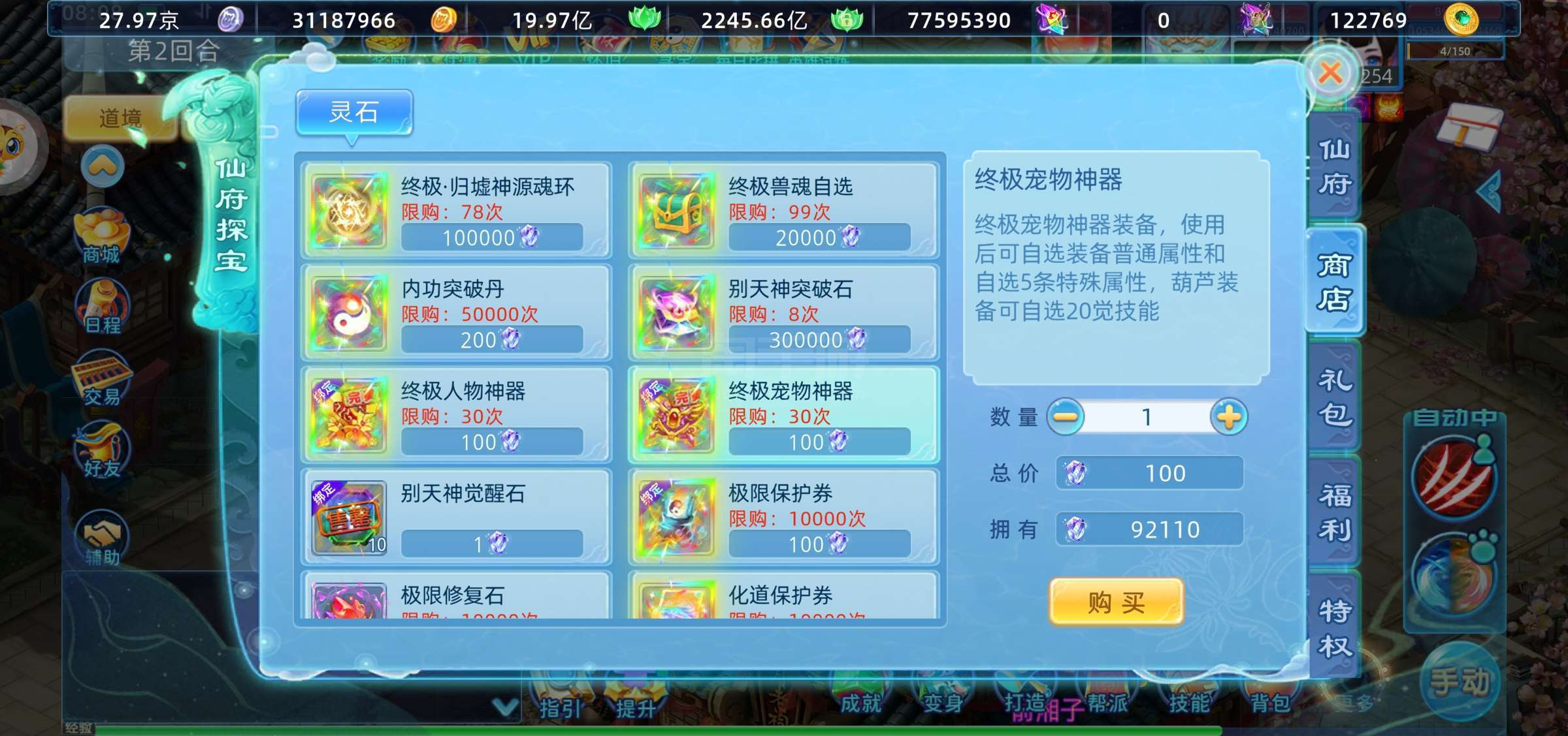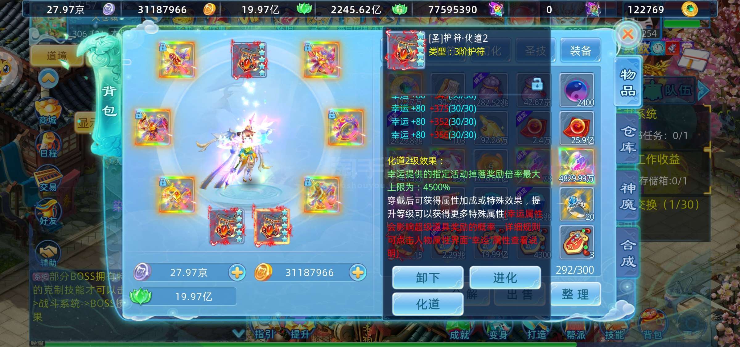 仙语奇缘(免费连抽)-新版【安卓爱趣】养老号,额度1.7W,法宝定制,白虎,饕餮都满了,就差别天神,自己看图吧,续有折