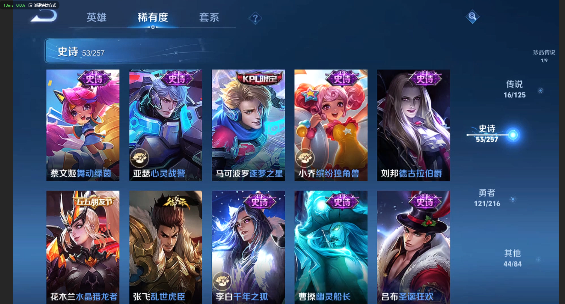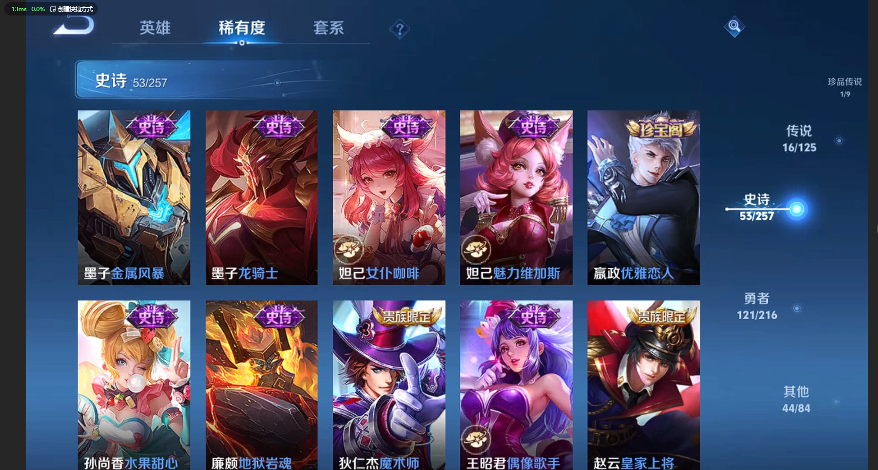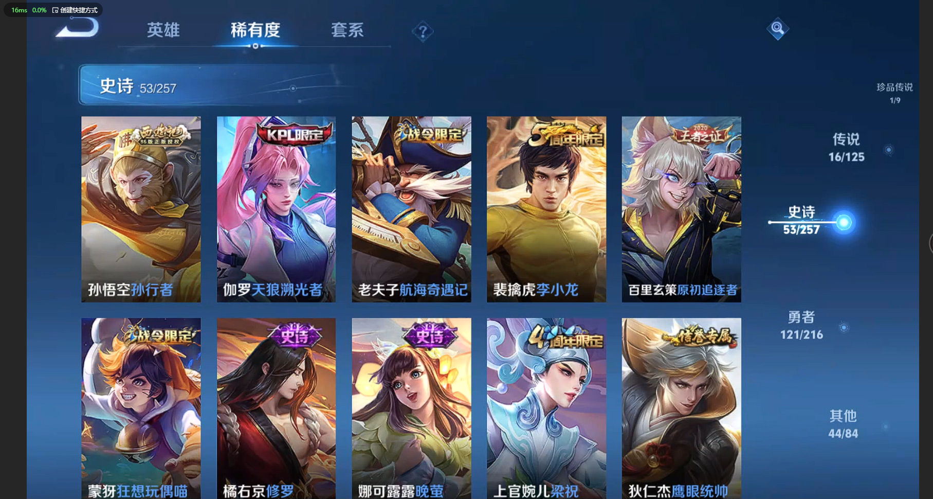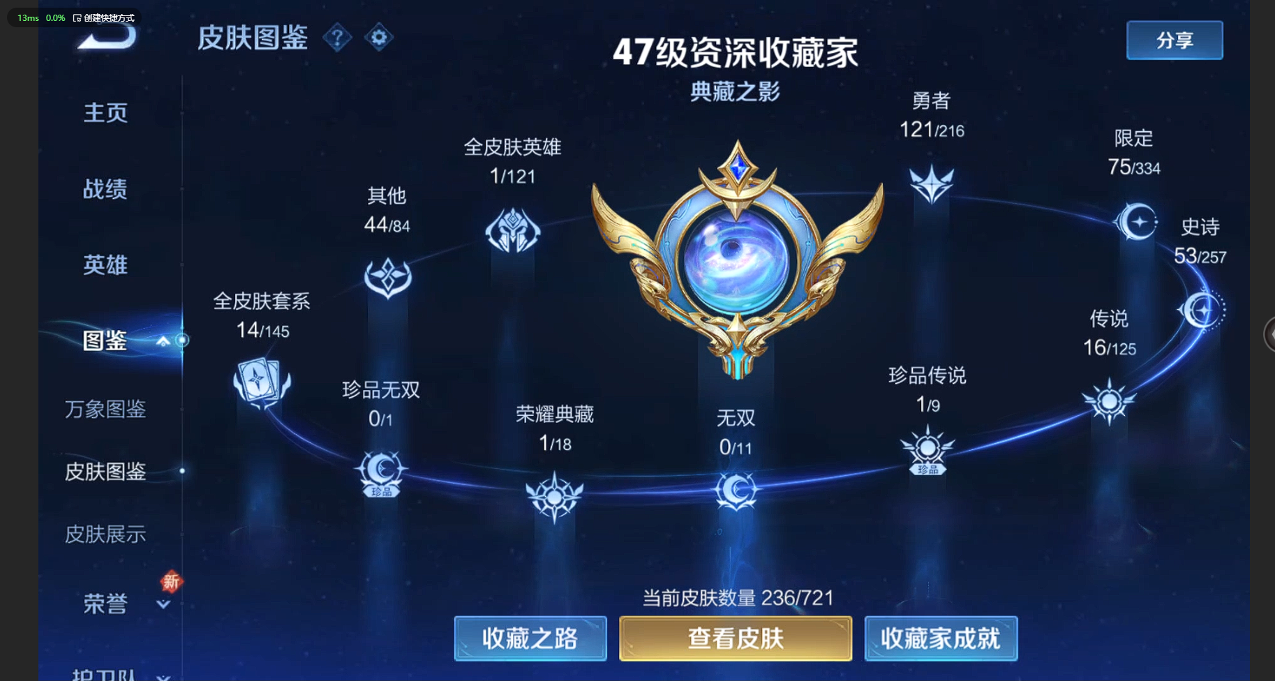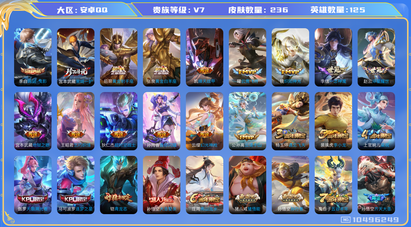 [10496249]打野21段 236皮肤 1典藏 1珍品传说 16传说 75