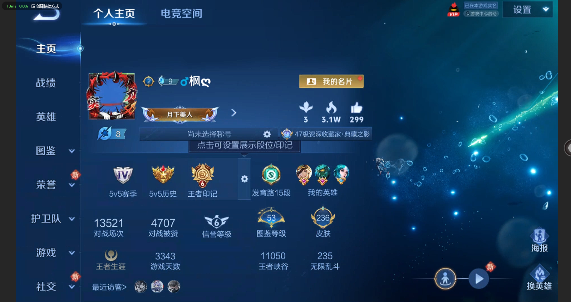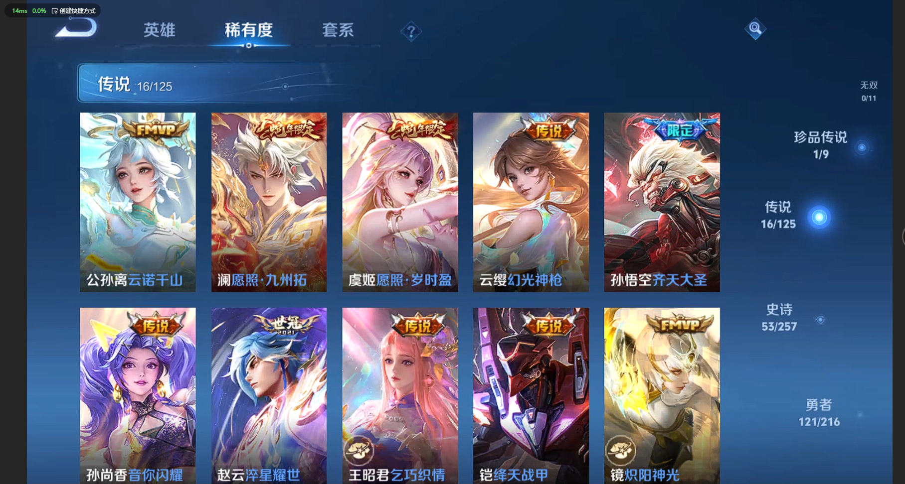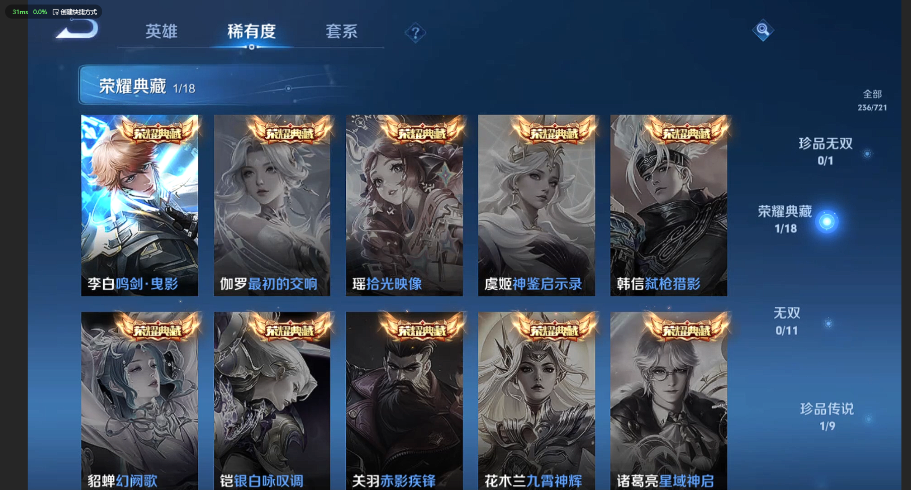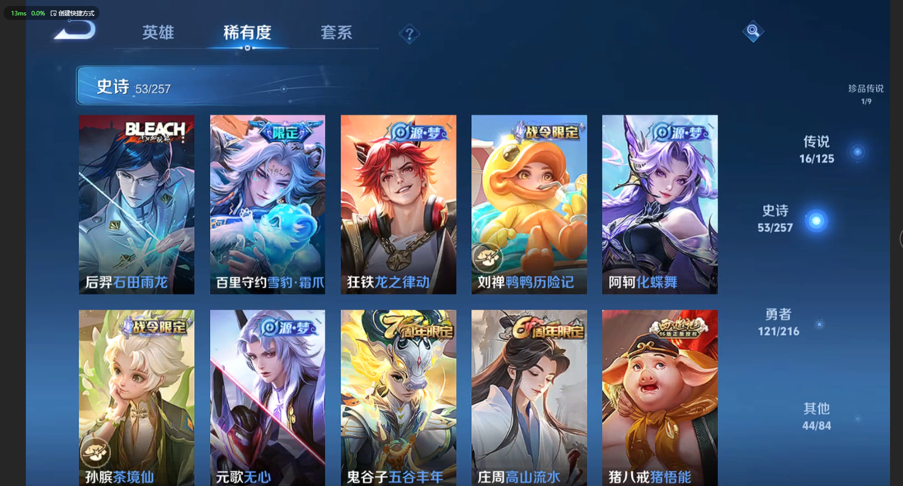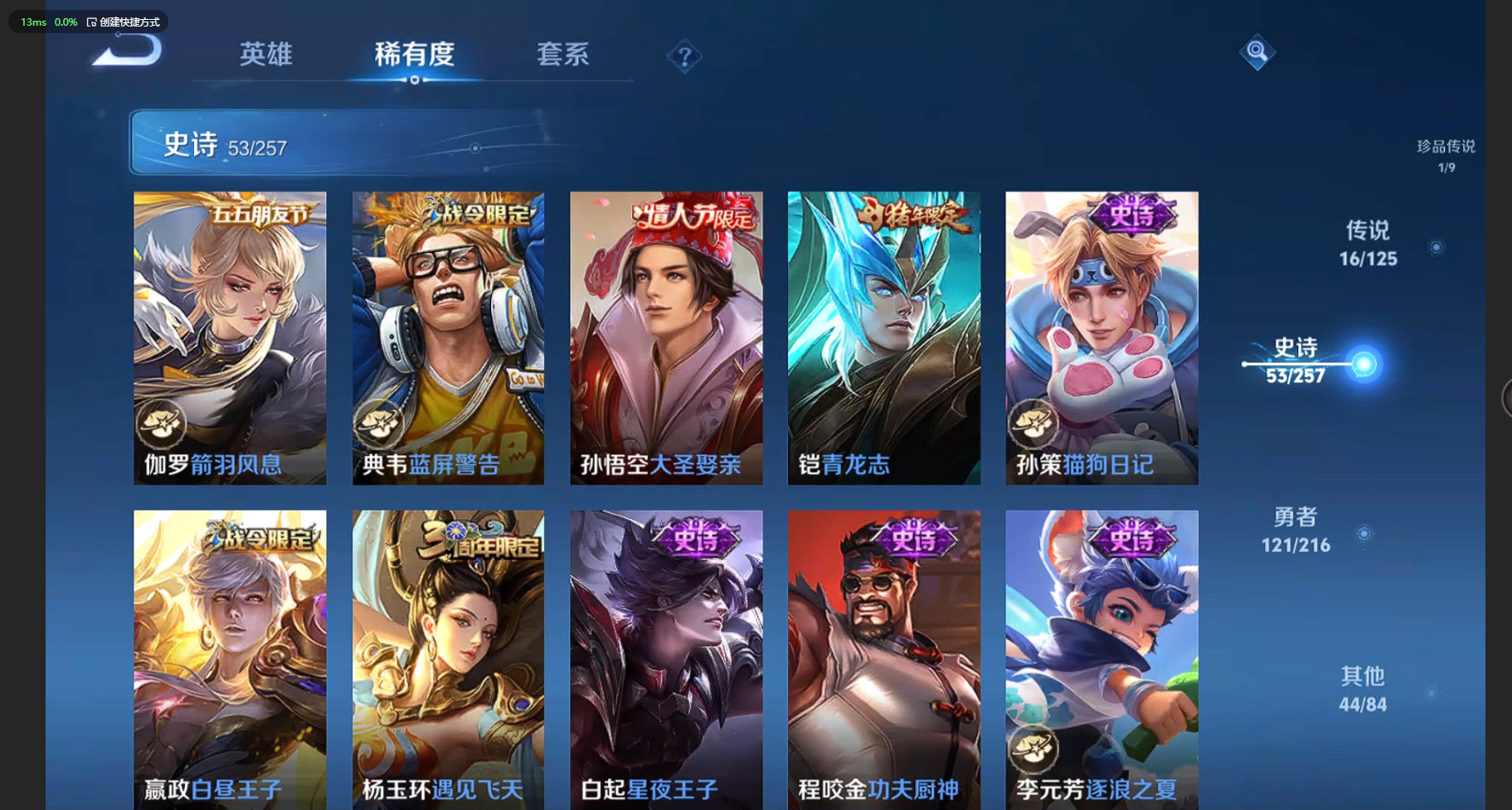 [10496249]打野21段 236皮肤 1典藏 1珍品传说 16传说 75