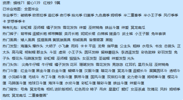 稀有礼包:彩虹帽 巫师帽 橘子发饰 雪花发饰 绊爱 巫树犄