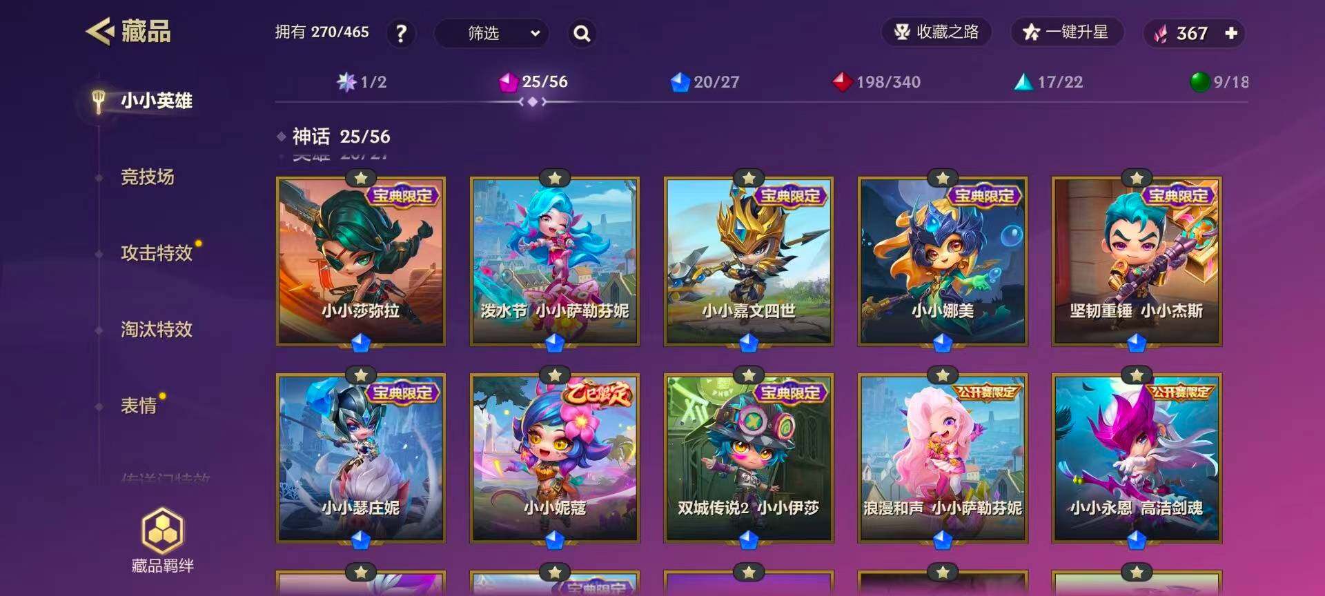 【神话小小英雄】:至臻 灵魂莲华 小小永恩,灵魂莲华 小小锤石,至臻 神龙尊者 小小李青,年糕鱼仙子 小小卡莎,糖葫芦仙子 小小索拉卡,麻辣火锅仙子 小小泽丽,泳池派对 小小佐伊,至臻 白蛇 小小迦娜,书生 小小彗,大师 小小永恩,福星 小小塔姆 纳财大帝,