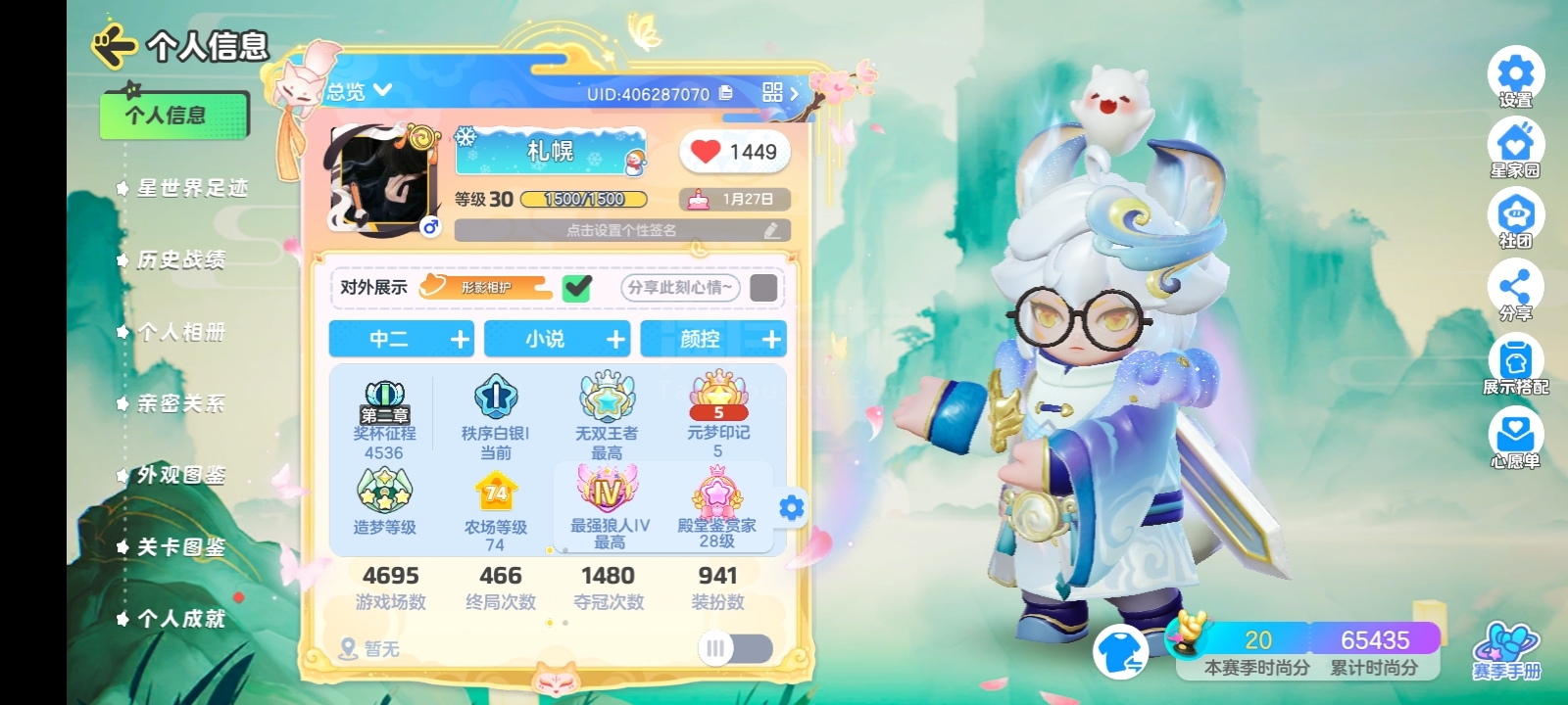 元梦之星【安卓微信】蓝狐狸,小龙女,充了进400,可以降价给,排位和狼人杀和峡谷3V3段位最高上过无双,最强,最强
