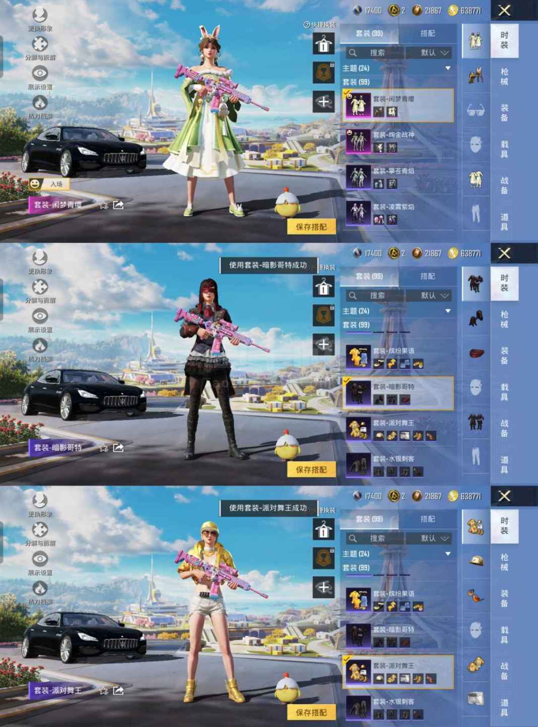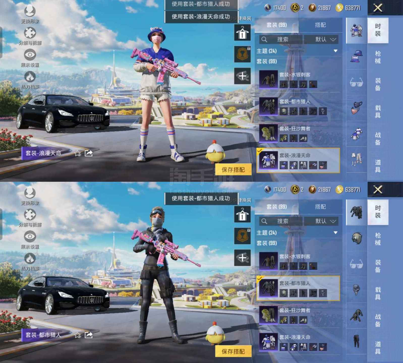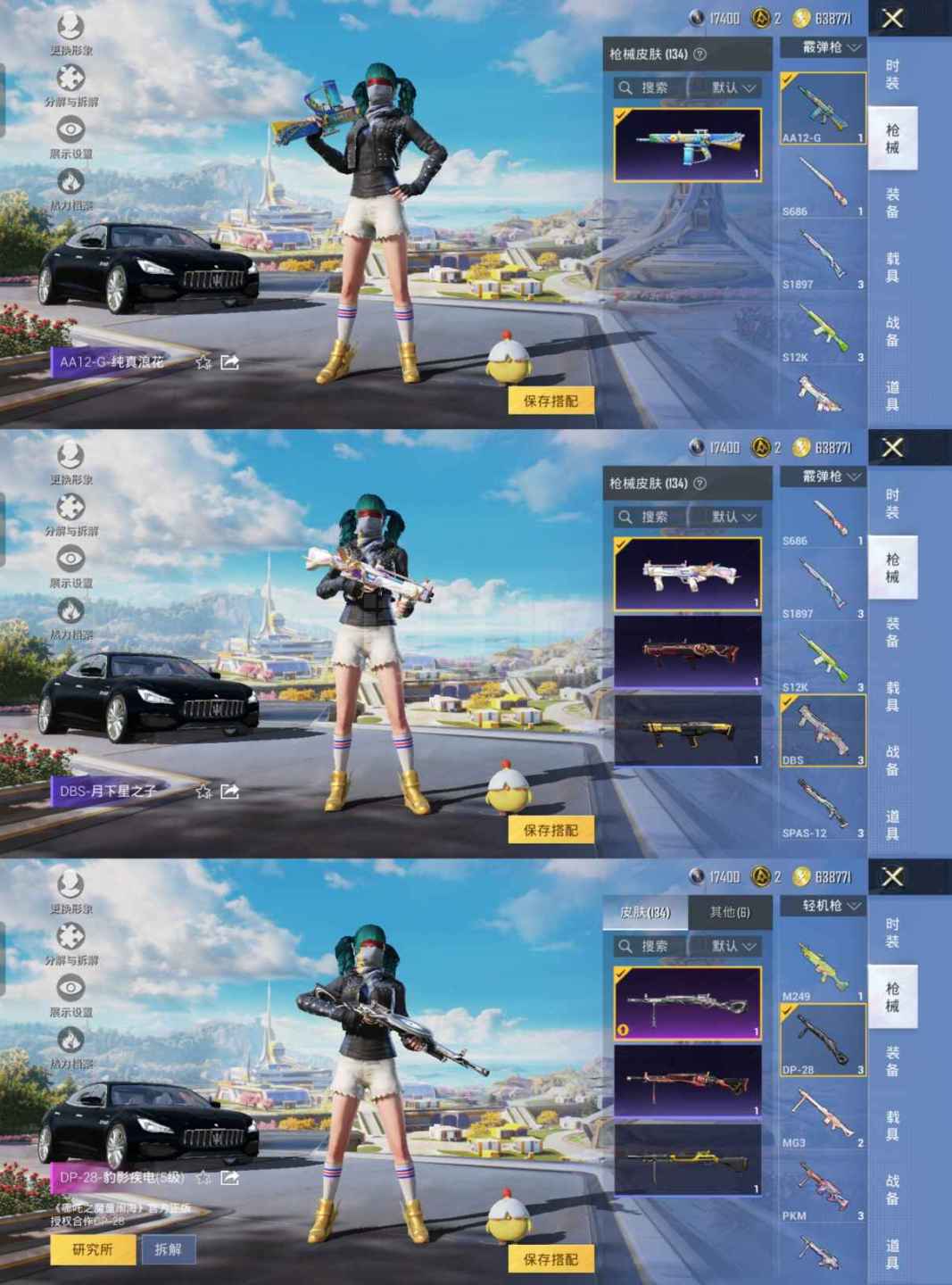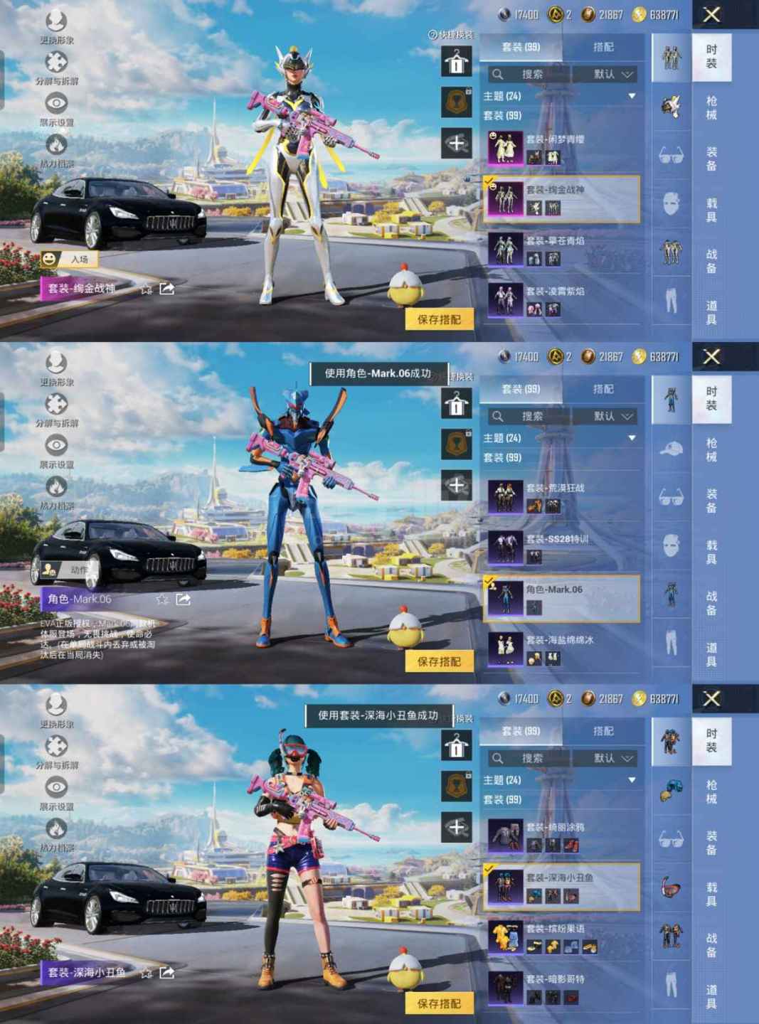 ZMH1077【1载具2粉装8特效枪 都市猎人 金鞋 浪漫天命 深海小丑鱼 暗影哥特 蓝螳螂 玛莎拉