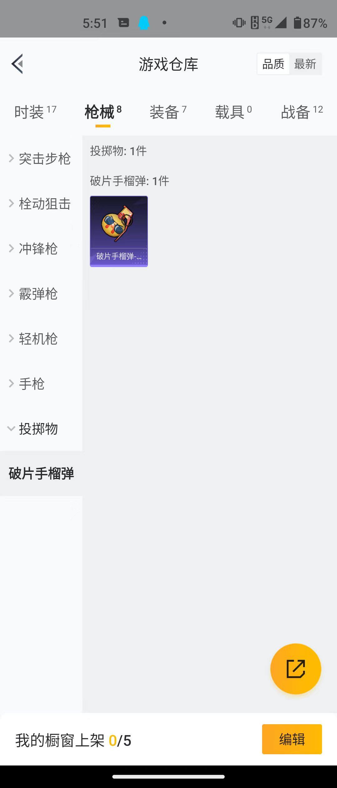 安卓 手Q-1粉装-1特效枪-0载具-0粉色飞行器-1682热力值-0王牌印记-2套装-8枪皮
