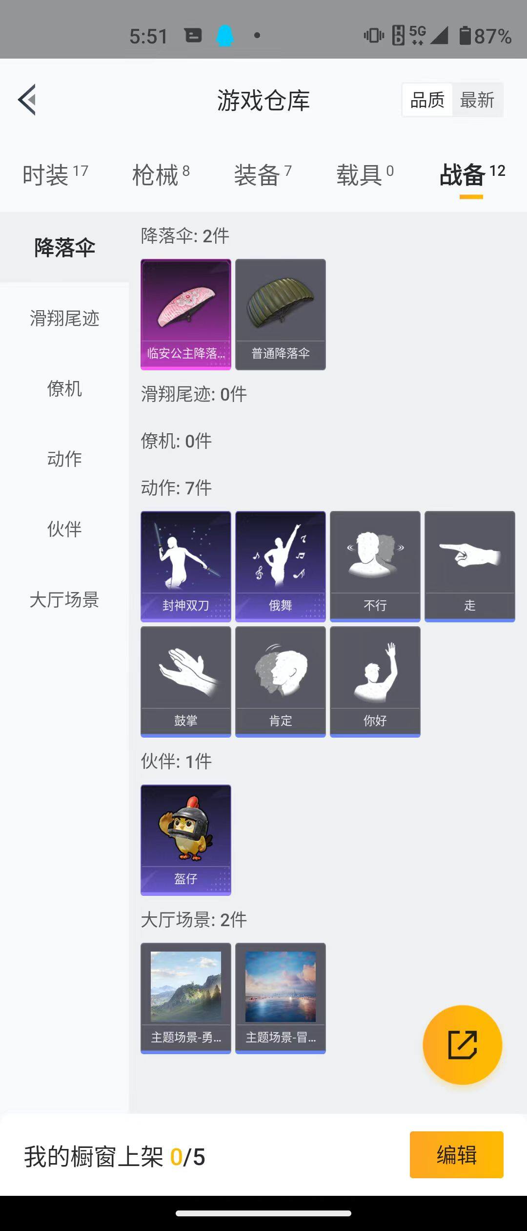 安卓 手Q-1粉装-1特效枪-0载具-0粉色飞行器-1682热力值-0王牌印记
