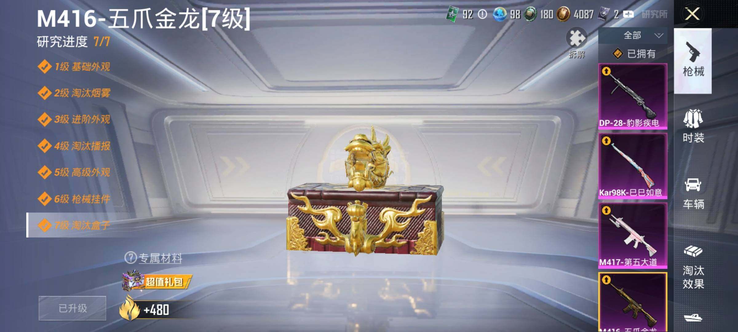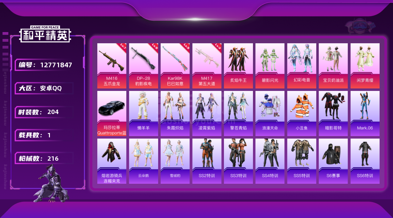 安卓Q-3稀有1载具5粉装4特效枪16热门204套装216枪皮 6印记 历史卓越王牌11星