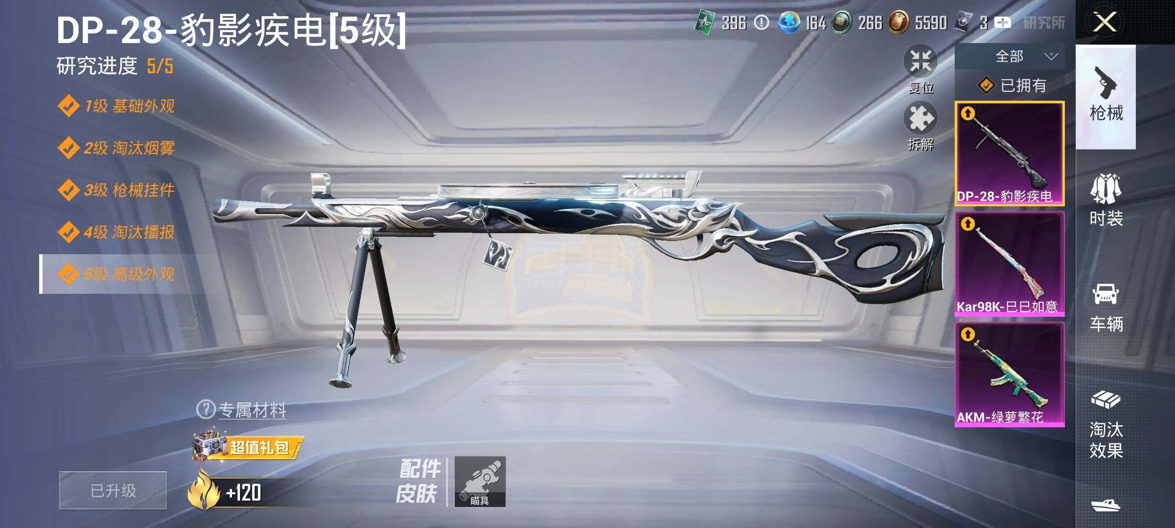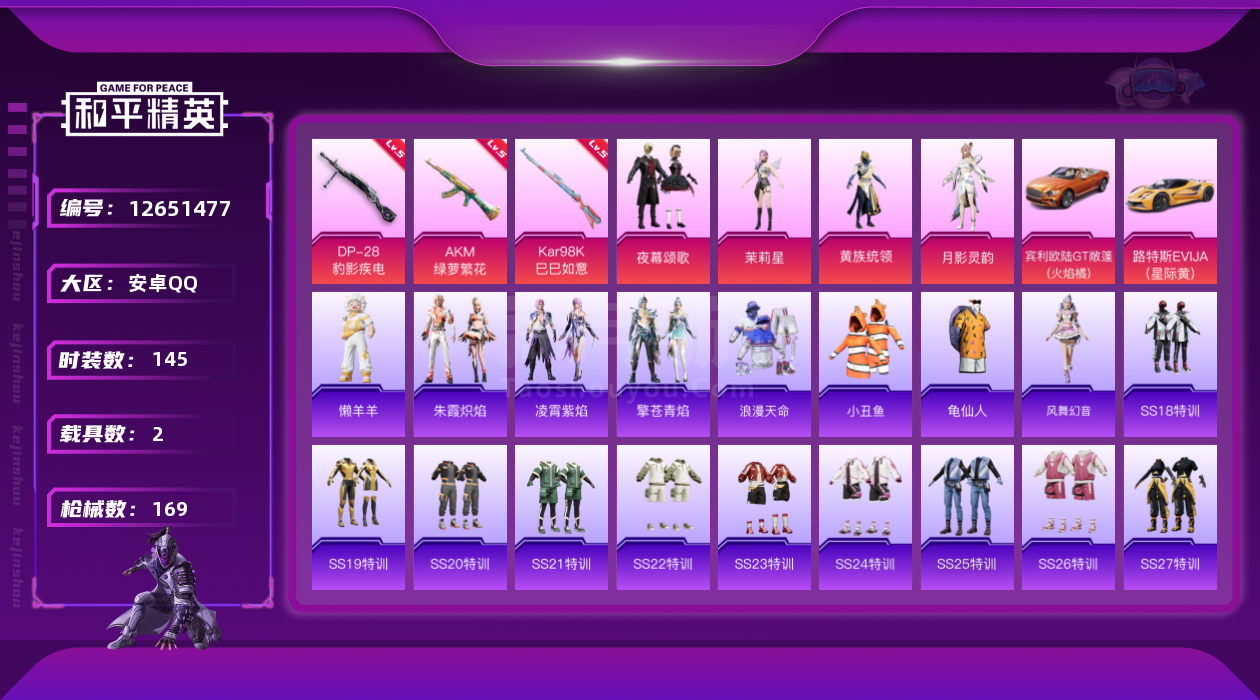 安卓Q-1稀有2载具4粉装3特效枪10热门145套装169枪皮 10印记 历史卓越王牌9星