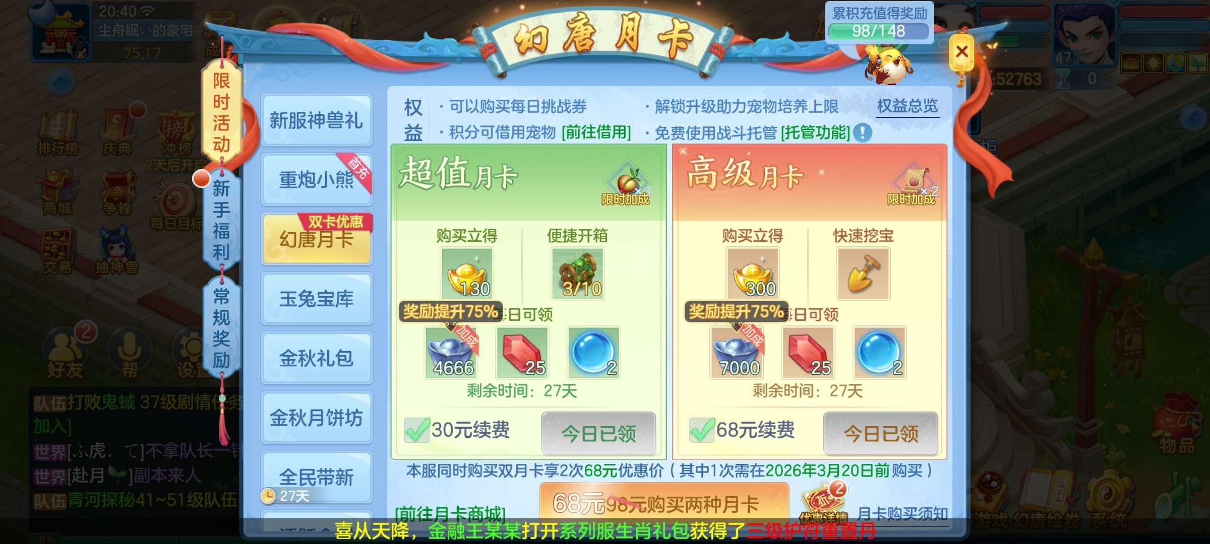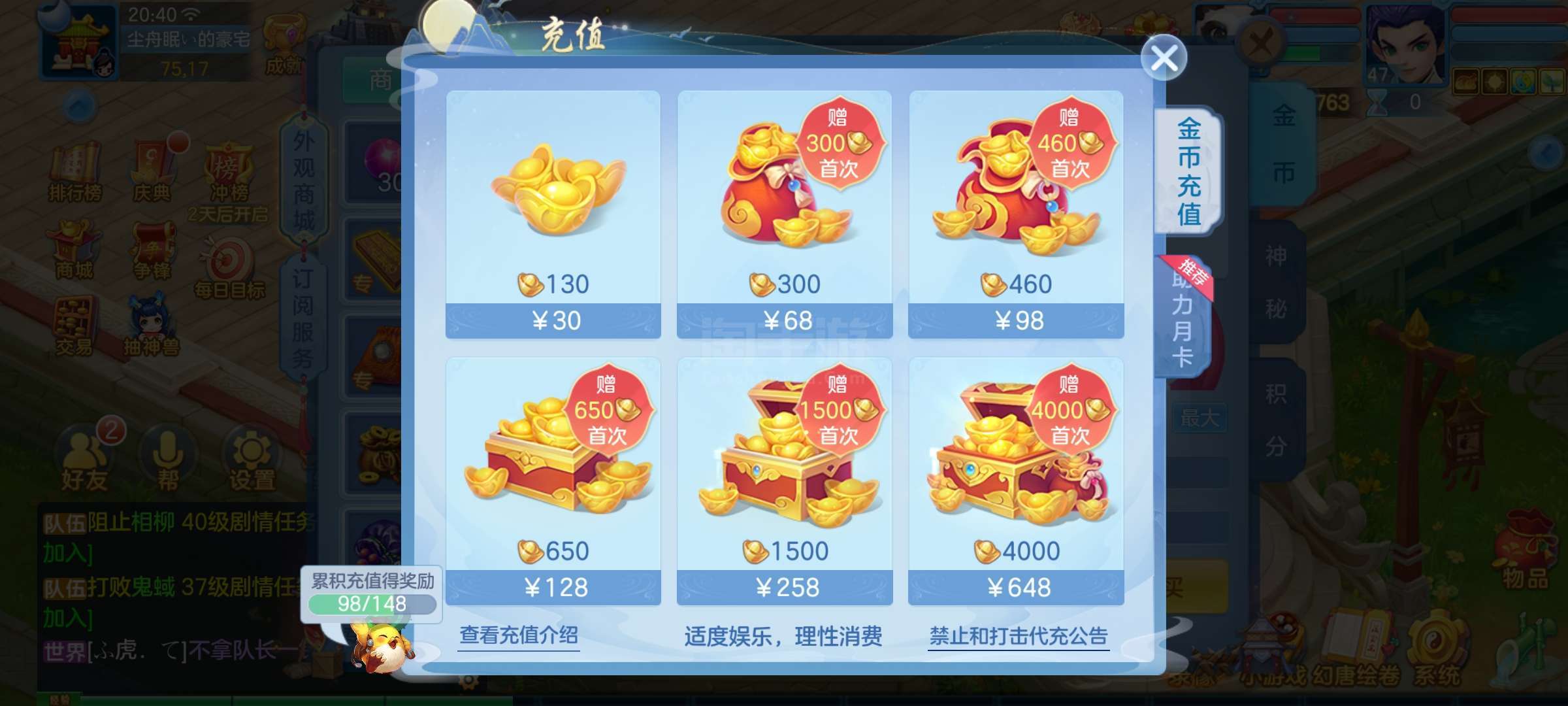 幻唐志:逍遥外传(神武4)【安卓官方】天行·逍遥普陀63w总资源月卡