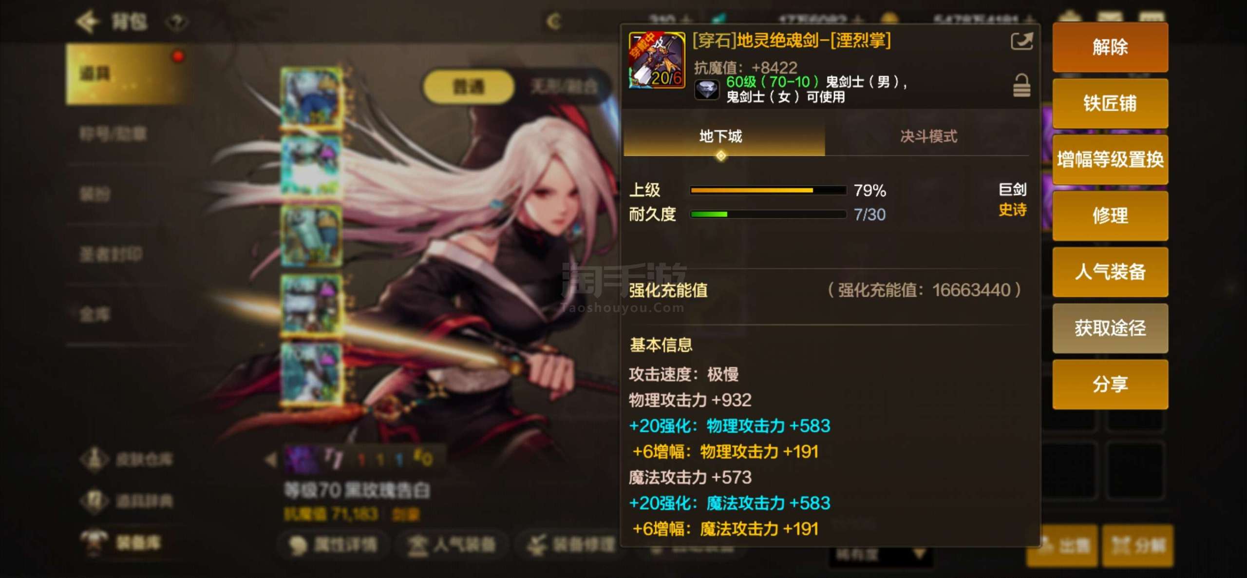 两套天空套,8万7抗魔红眼,六个角色70史诗本命武器,一手号白菜价
