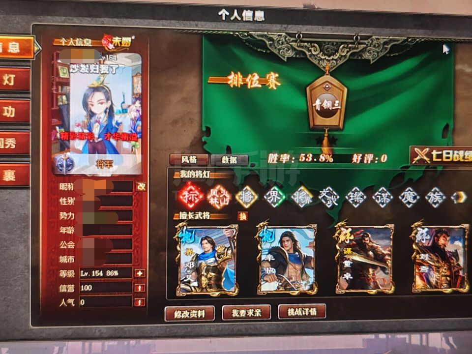 三国杀OL【安卓4399】主要是有谋董卓,4399账号还买了重生细胞阴阳师百闻牌有好几套卡组加异画反正。玩了很多游戏
