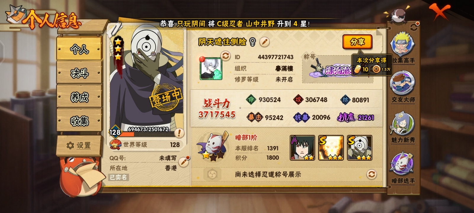 火影忍者【安卓QQ】白面,黄猿, 漂泊带土,37片秽土再不斩,多s碎片