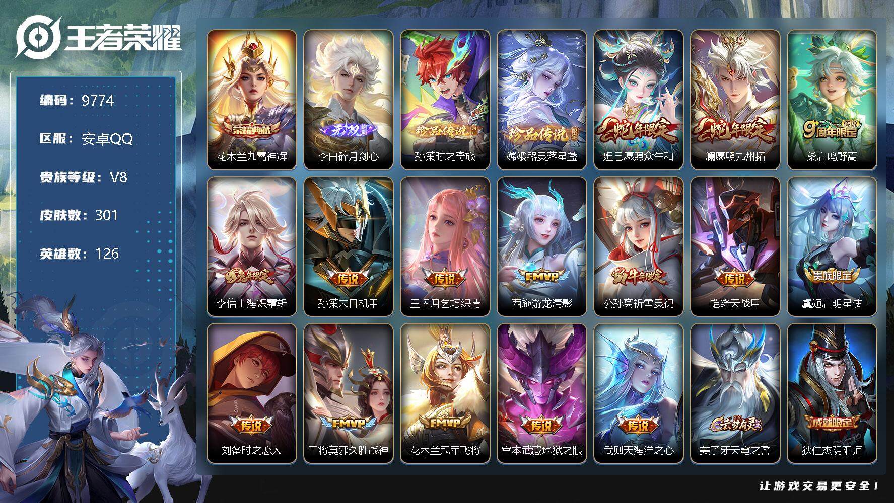 王者荣耀【安卓QQ】W8723 可立即换绑无需挂单养号 铭文满级 典藏1 传说15
