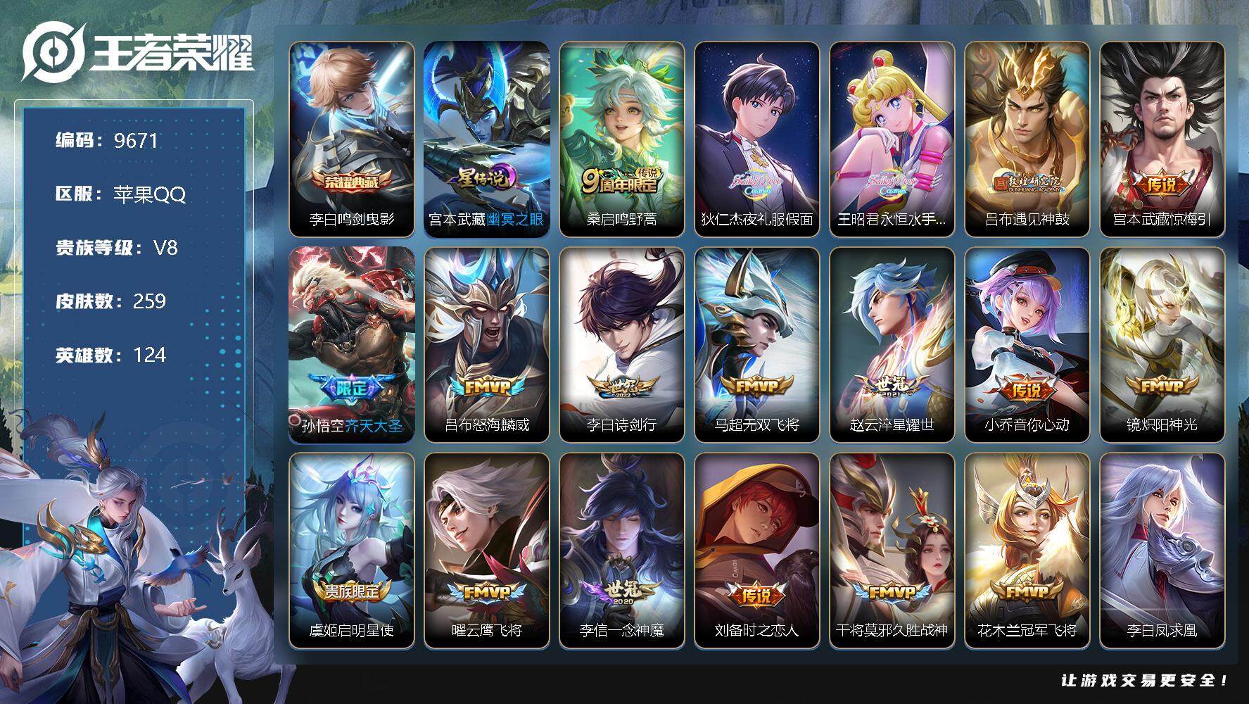 营地账号:361605503/【商品标题】:W8646 可立即换绑无需挂单养号 刘禅省标7918 多省标 铭文满级 典藏1 传说21 星传说1 按键6 夺宝7 苹果Q-V8-永恒钻石III段位-124英雄-259皮肤-1典藏-0珍品无双-0无双-0珍品传说-21传说-57史诗