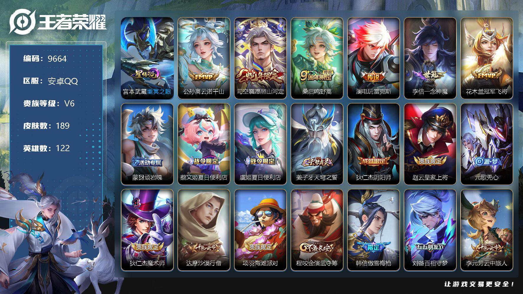 营地账号:1796277453/【商品标题】:W8643 可立即换绑无需挂单养号 铭文满级 传说6 星传说1 按键4 夺宝211 安卓Q-V6-最强王者段位-122英雄-189皮肤-0典藏-0珍品无双-0无双-0珍品传说-6传说-55史诗