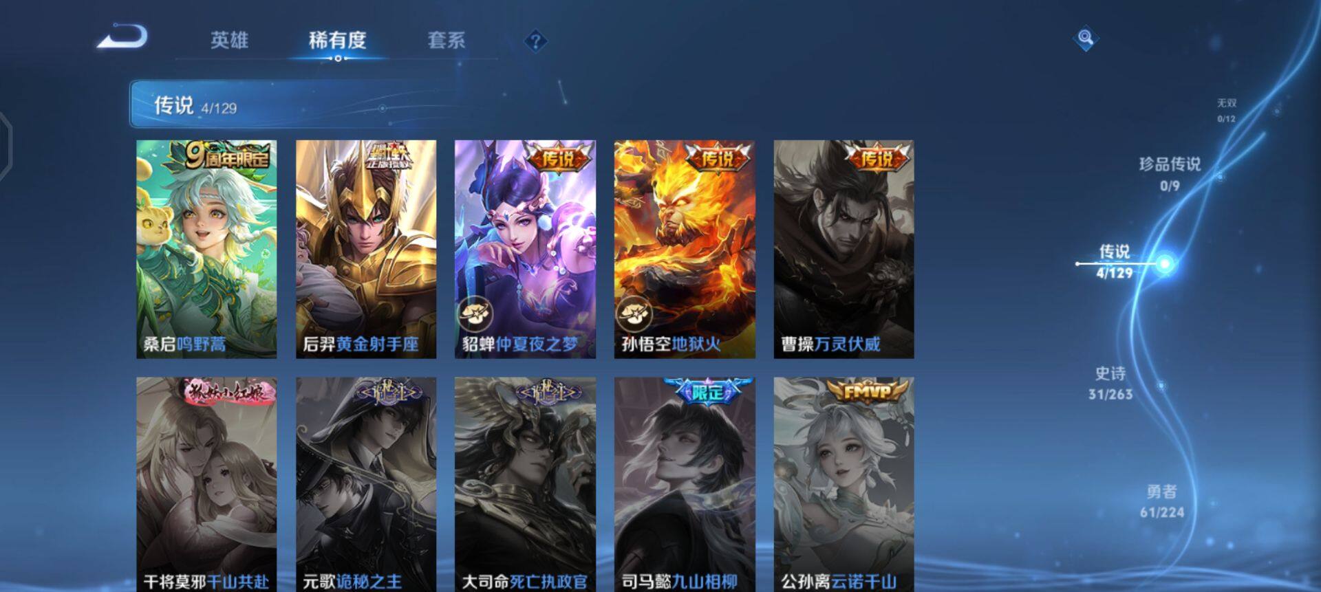 【传说皮肤】:桑启鸣野蒿,后羿黄金射手座,貂蝉仲夏夜之梦,孙悟空地狱火