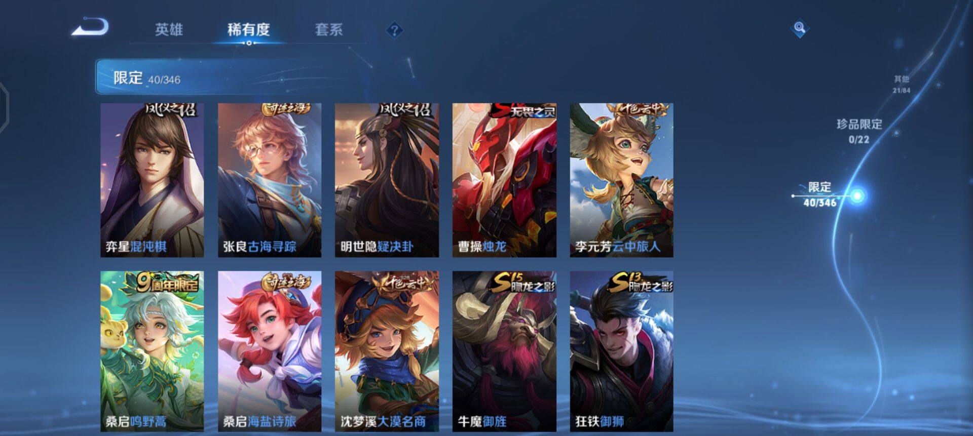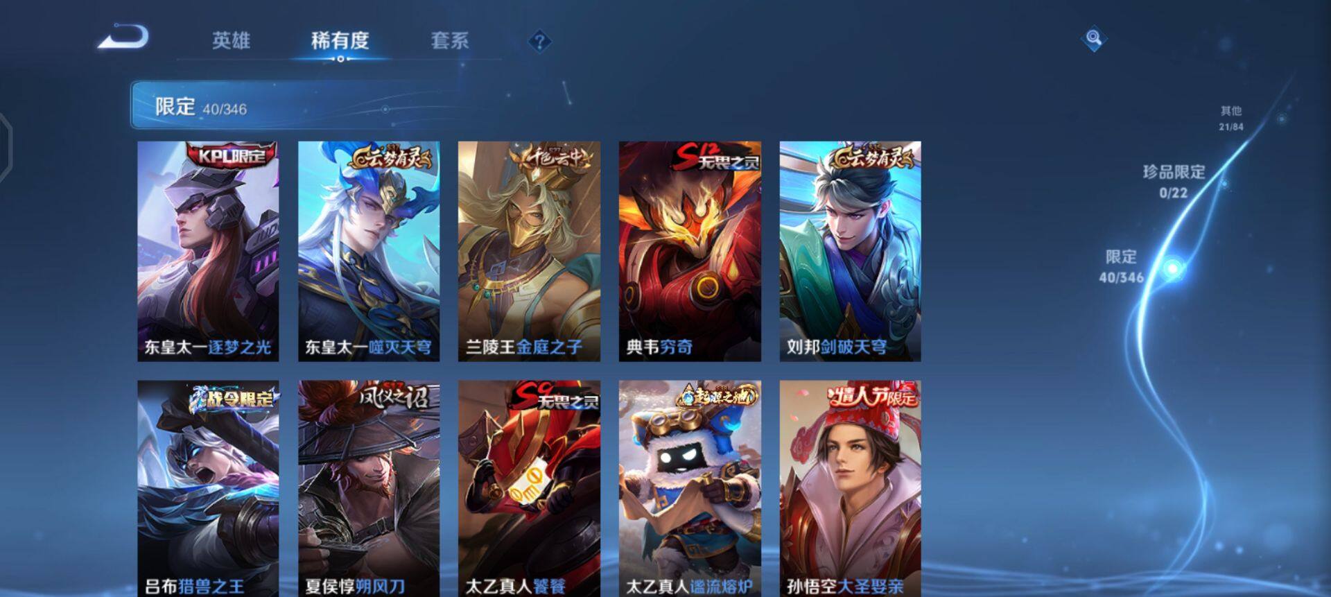 【限定皮肤】:白起狰,狄仁杰阴阳师,赵云皇家上将,鲁班七号狮舞东方,芈月重明,吕布