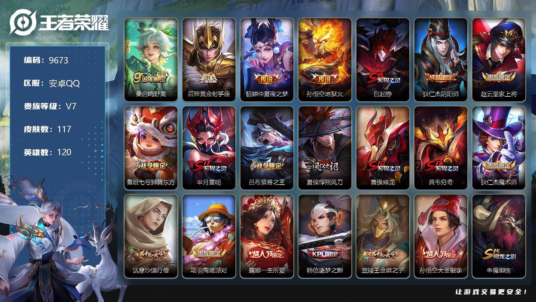 营地账号:90028695/【商品标题】:W8650 可立即换绑无需挂单养号 铭文满级 传说4 夺宝97 安卓Q-V7-永恒钻石V段位-120英雄-117皮肤-0典藏-0珍品无双-0无双-0珍品传说-4传说-31史诗