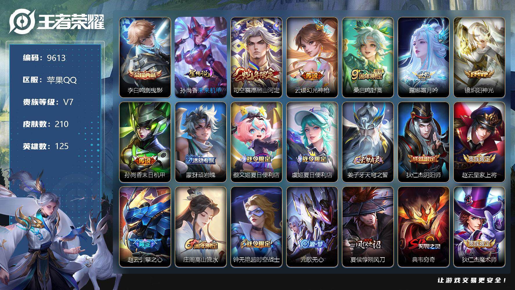 营地账号:416010073/【商品标题】:W8621 可立即换绑无需挂单养号 铭文满级 典藏1 传说6 星传说1 按键6 夺宝107 苹果Q-V7-永恒钻石III段位-125英雄-210皮肤-1典藏-0珍品无双-0无双-0珍品传说-6传说-53史诗