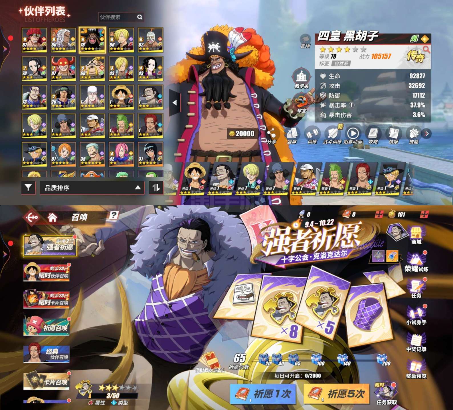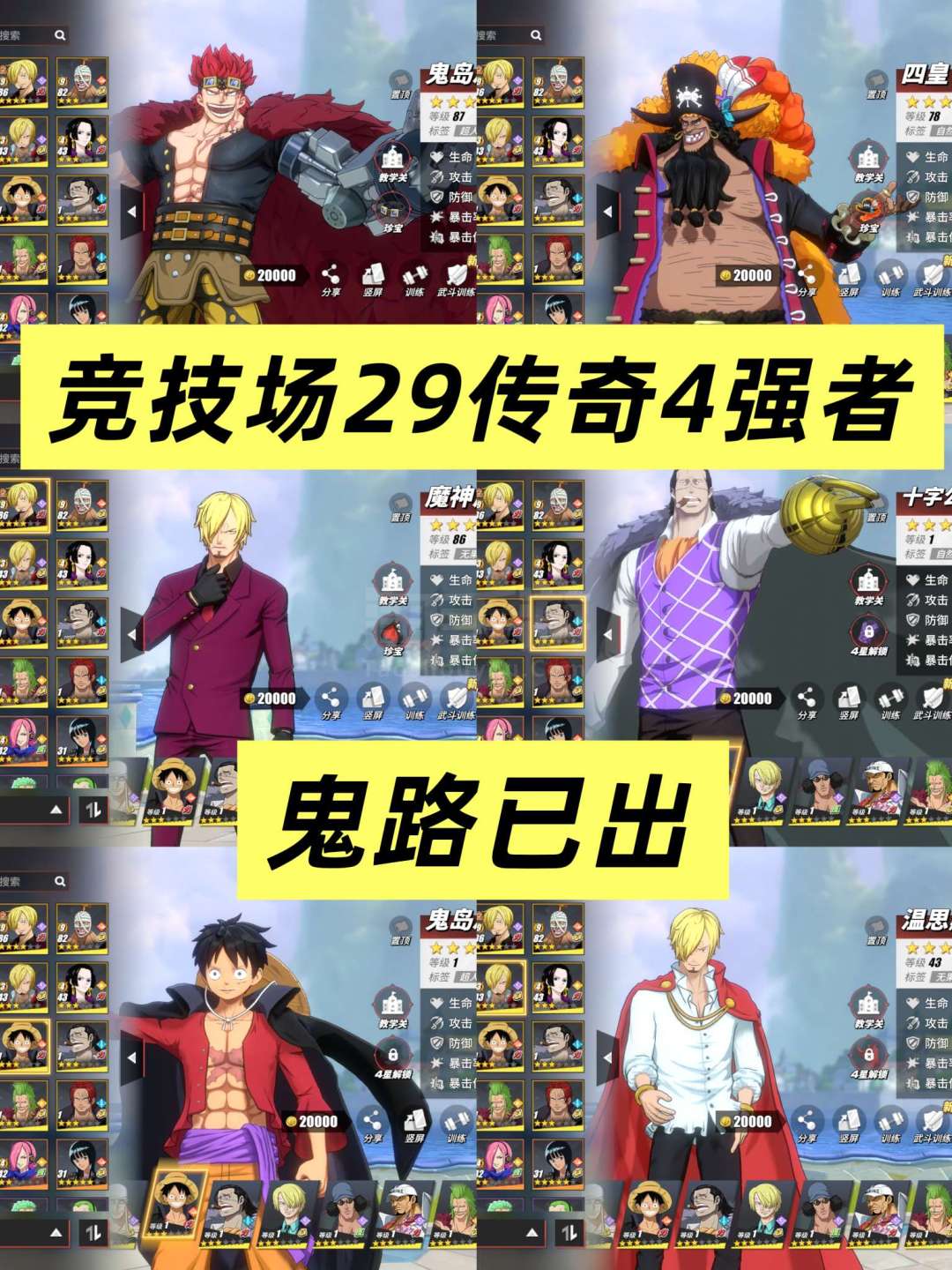竞技场29传奇4强者 基德 魔神山治 四皇黑胡子 十字公会老沙 鬼路已出 文山 红发 库赞 烬 vi