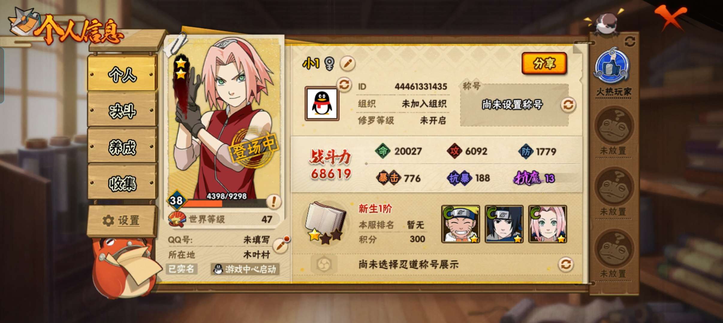 火影忍者【安卓QQ】便宜出了,没时间玩了,有小讲