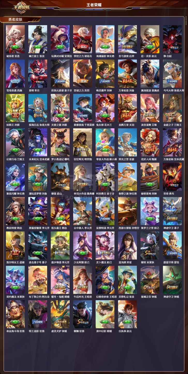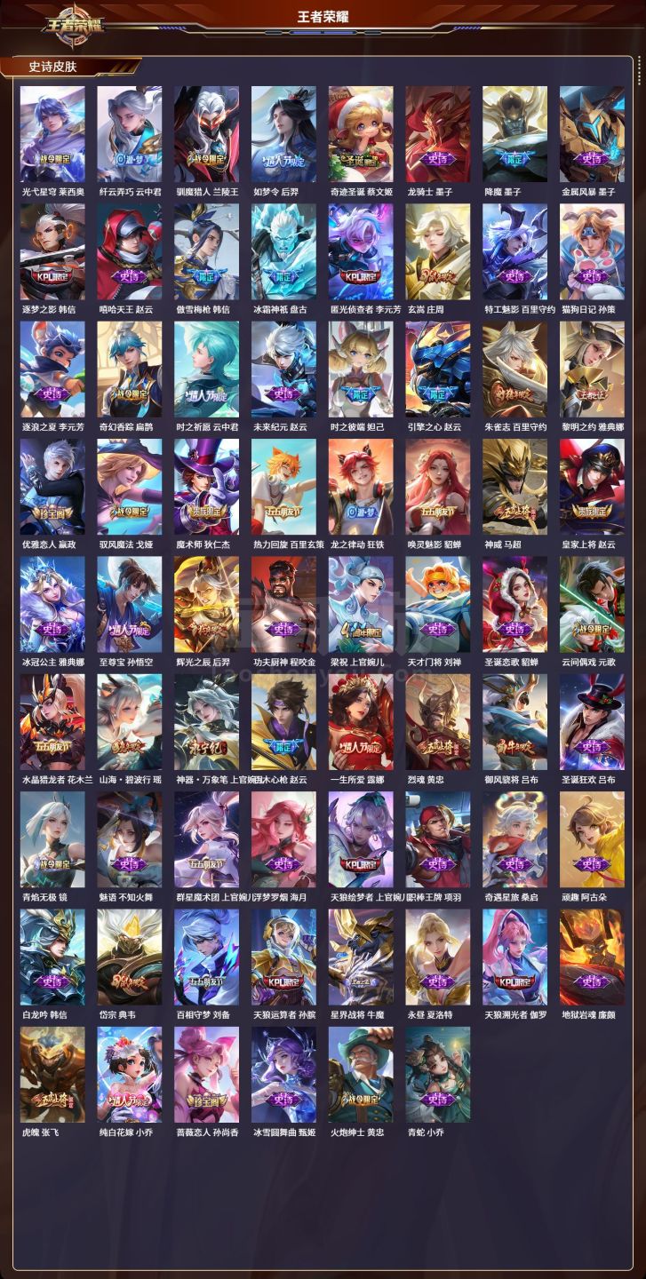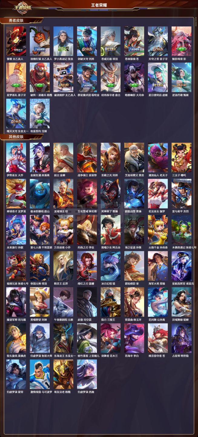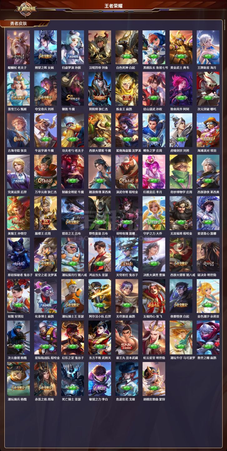 安卓QQ/至圣王者/592皮肤/128英雄/9典藏/0珍品无双/7无双/0珍品传说/103传说/20