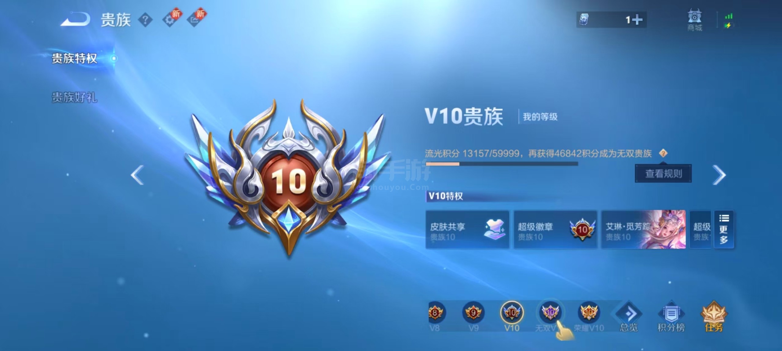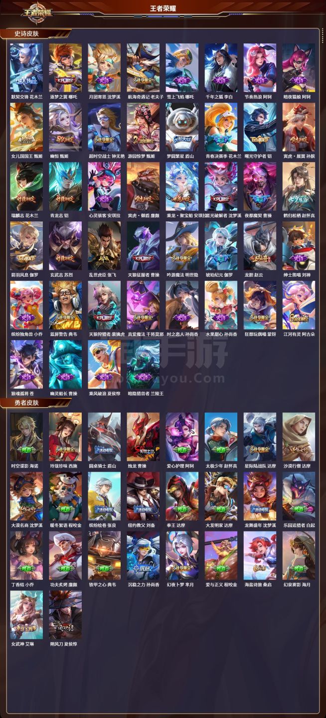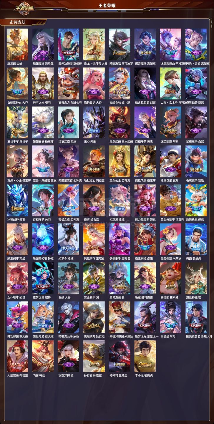安卓QQ/至圣王者/592皮肤/128英雄/9典藏/0珍品无双/7无双/0珍品传说/103传说/20