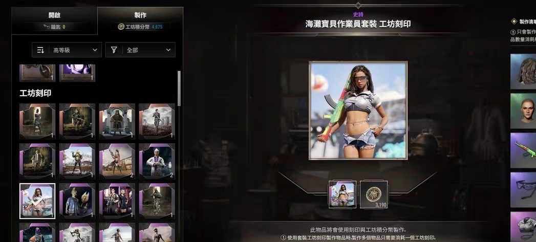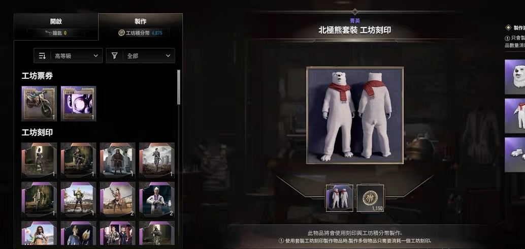 工坊带北极熊套装➕黑熊套装➕沙漠执法者套装➕羽翼套装➕沙滩宝贝套装➕朱莉渗透者夹克➕还带很多工坊库存