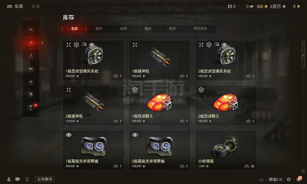 银币600万、6配件1辆7级金币车:IS2S3辆6级金币车:斯柯达T40、64式、131虎式2