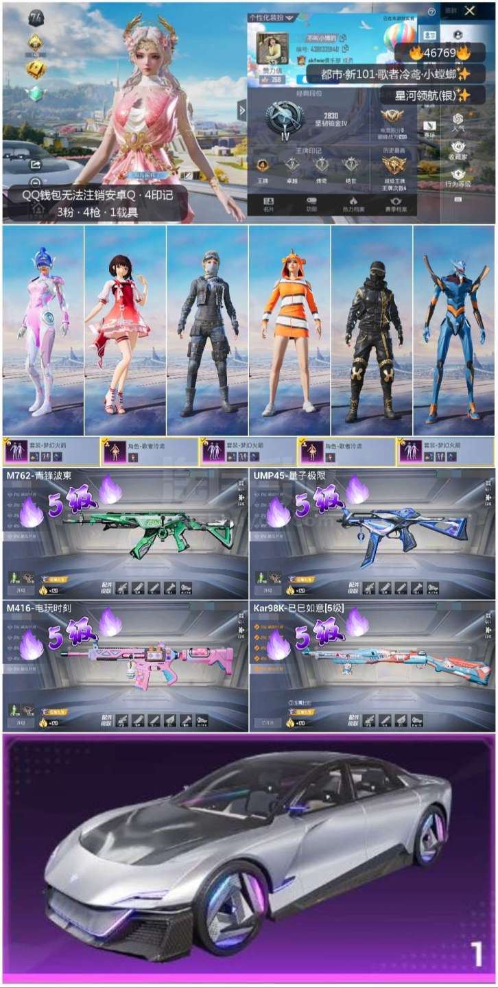 hs46769 安卓手Q-4王牌印记-3粉装-4特效枪-1载具-43242热力值-120套装-126