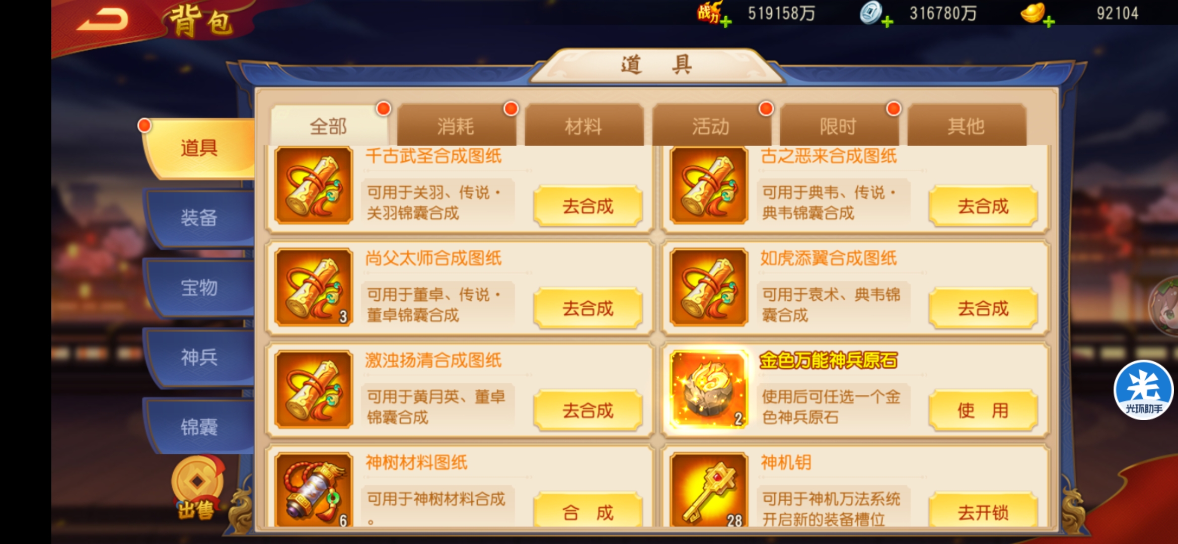 3将:神装+双管辂➕双破6、2万玉、武将材料一大堆蔬菜2万+13万功绩